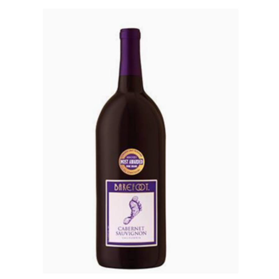 Barefoot Cabernet Sauvignon is smooth and balanced with light tannins. This red wine has big berry flavors, aromas of currant, raspberry and blackberry mixed with a long velvety vanilla finish. This larger 1.5L bottle is a great size for entertaining!