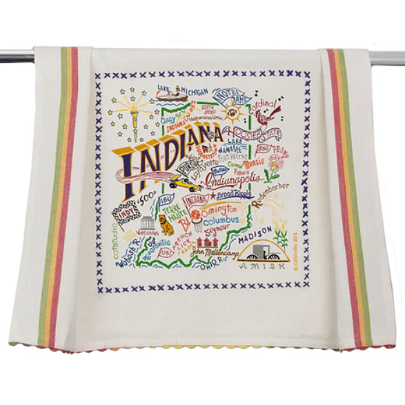 Bring Hoosier pride into your kitchen—this “State of Indiana Dish Towel” blends bold graphic design with everyday utility and nostalgic vintage touches.