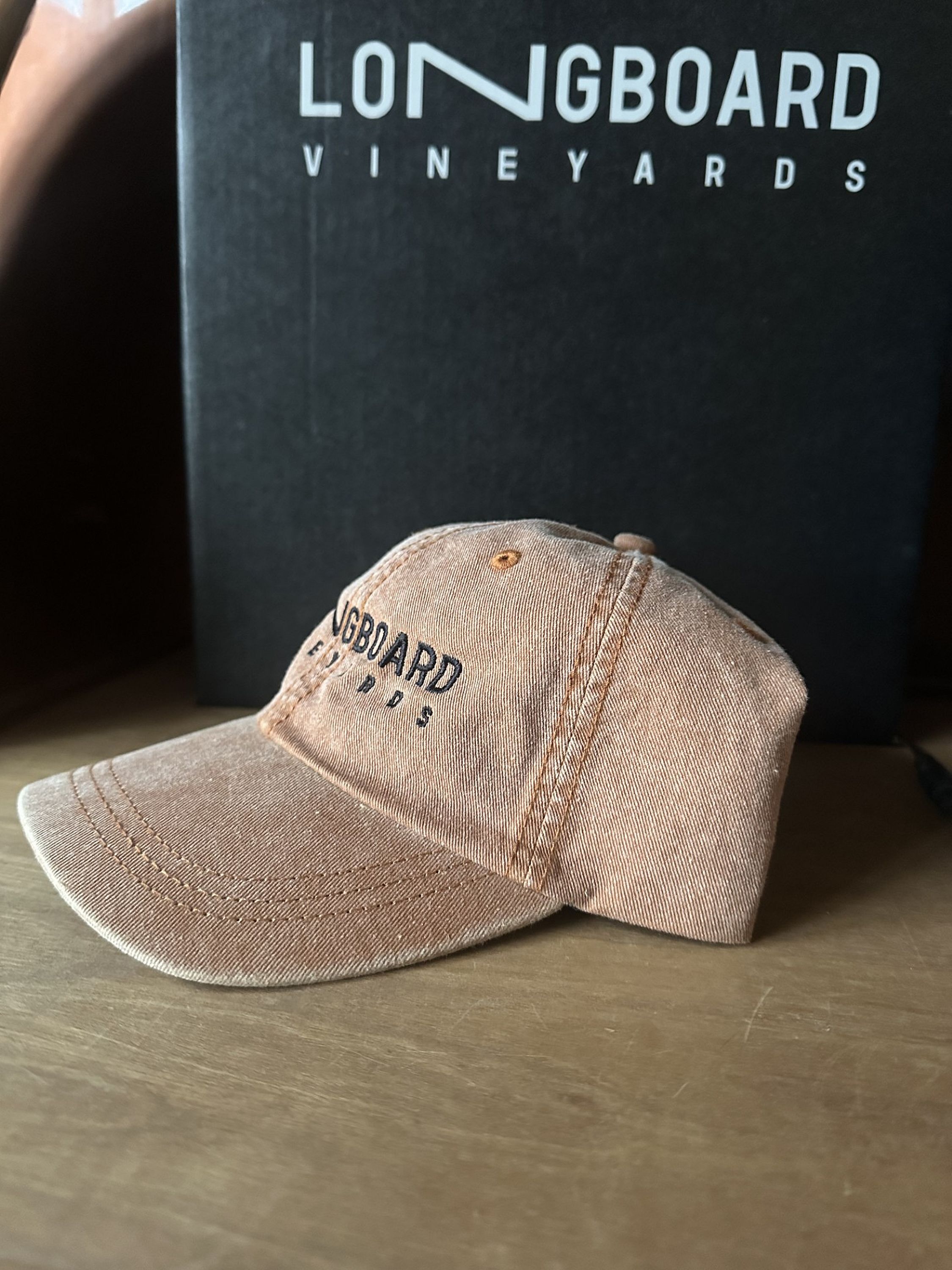 A timeless piece of the Longboard lifestyle — this washed terracotta cotton cap features our signature Longboard Vineyards logo embroidered in deep black. Soft, sun-faded fabric and an adjustable back strap make it the perfect companion for days spent wine tasting, surfing the coast, or just cruising through town.