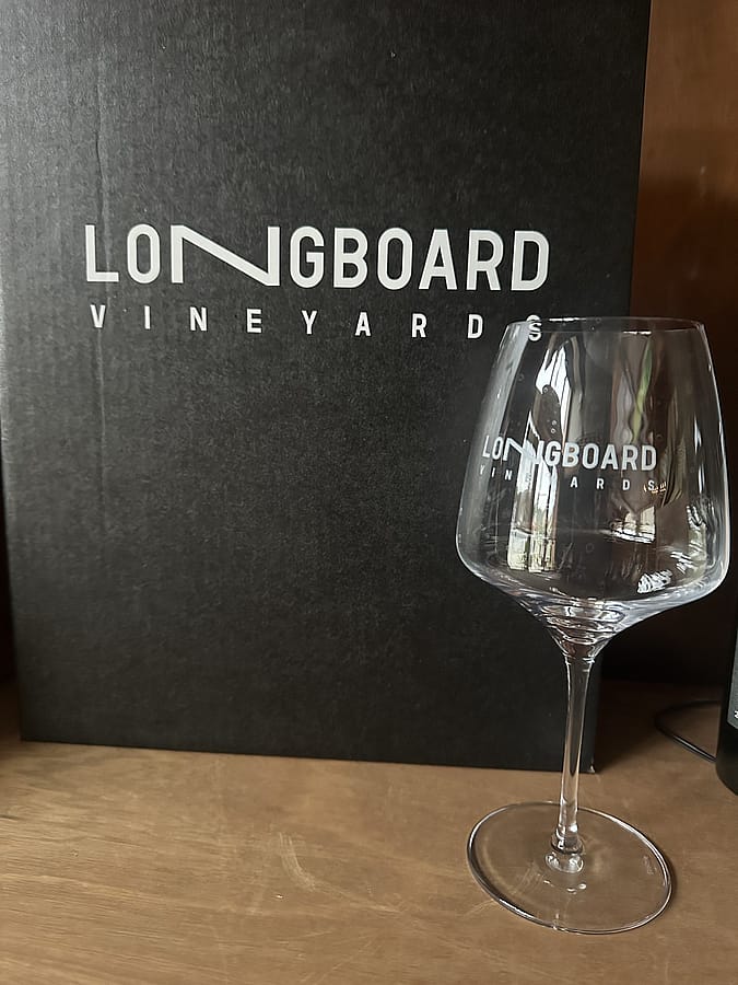 Elevate your pour with the Longboard Vineyards signature wine glass, designed for both everyday enjoyment and special occasions. Etched with the Longboard Vineyards logo, this crystal-clear glass embodies the balance of craft and California surf culture — sleek, relaxed, and built for the perfect swirl.