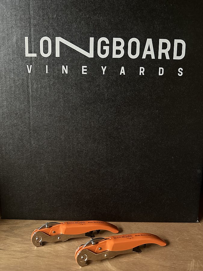 Our Longboard Vineyards double-hinged corkscrew features a bright sunset-orange finish with the Longboard logo — a nod to the energy and warmth of wine country life. Designed for smooth, easy pulls and reliable use, it’s a must-have tool for wine lovers and collectors alike.
