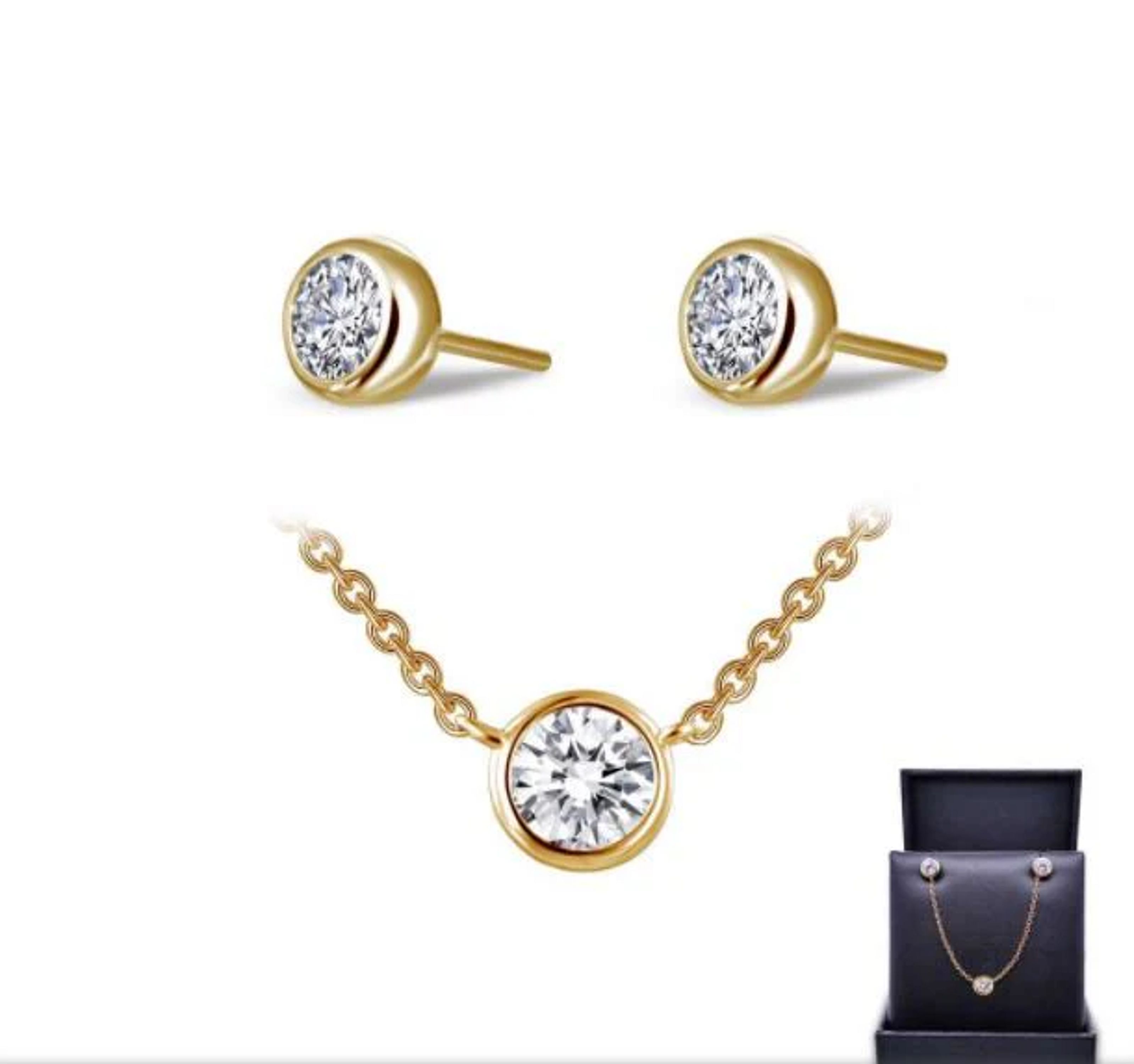 Lafonn 10th Anniversary Bezel Set Sterling Silver platted yellow boxed Set featuring our signature simulated diamonds. Each limited-edition set is priced to put luxury within reach. Special Anniversary Price.