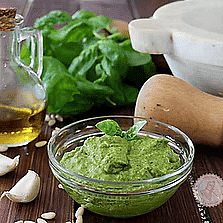 Made with fresh basil, rich extra virgin olive oil, and a blend of parmigiano and pecorino cheeses, our pesto follows the beloved Genovese tradition. Sold frozen in 8oz container.