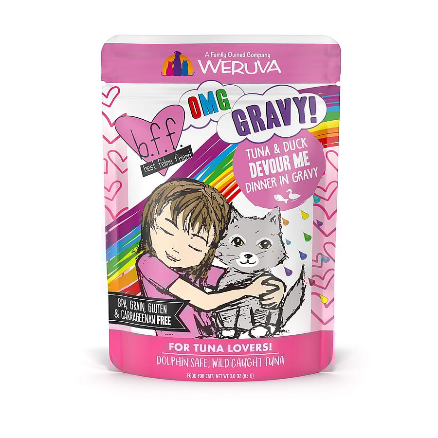 BFF OMG GRAVY Tuna & Duck Devour Me Dinner in Gravy Wet Cat Food Pouch, 3-oz