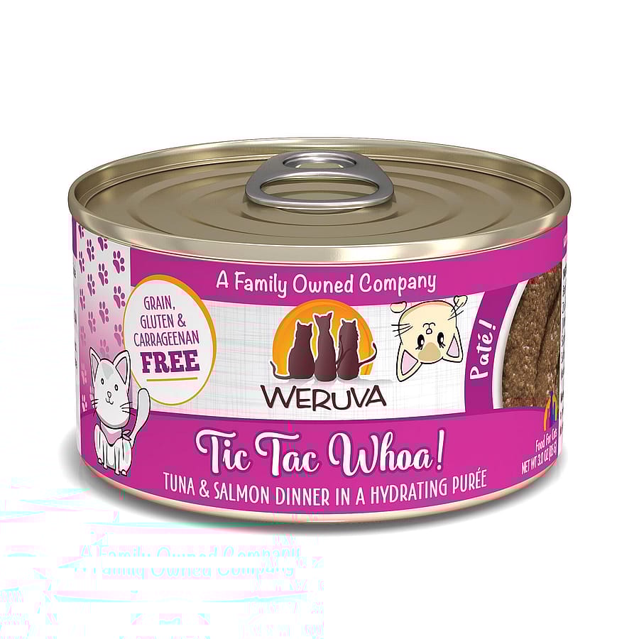 Weruva Cat Pate Tic Tac Whoa! Tuna & Salmon Dinner in a Hydrating Puree Wet Cat Food Can, 3-oz