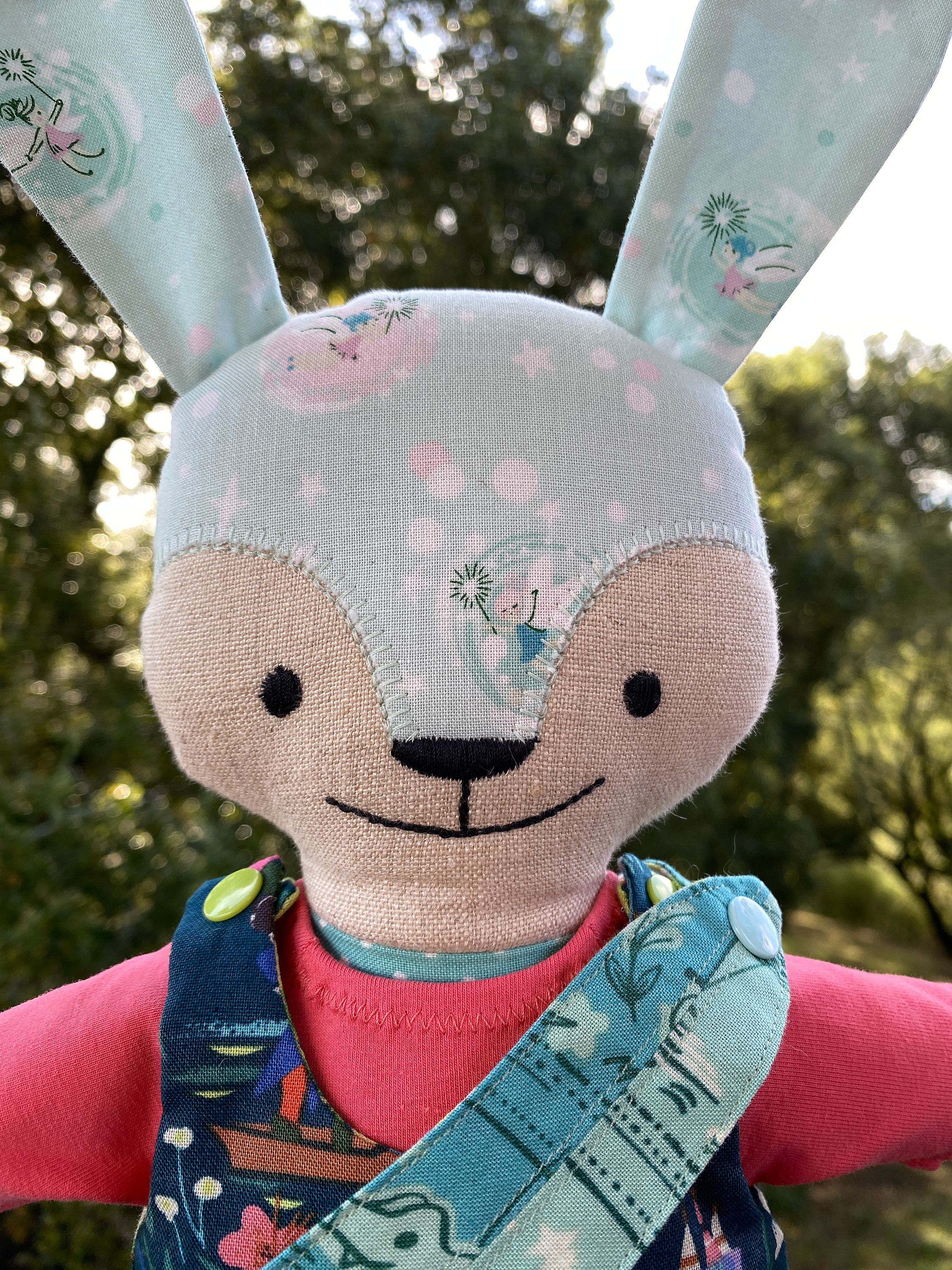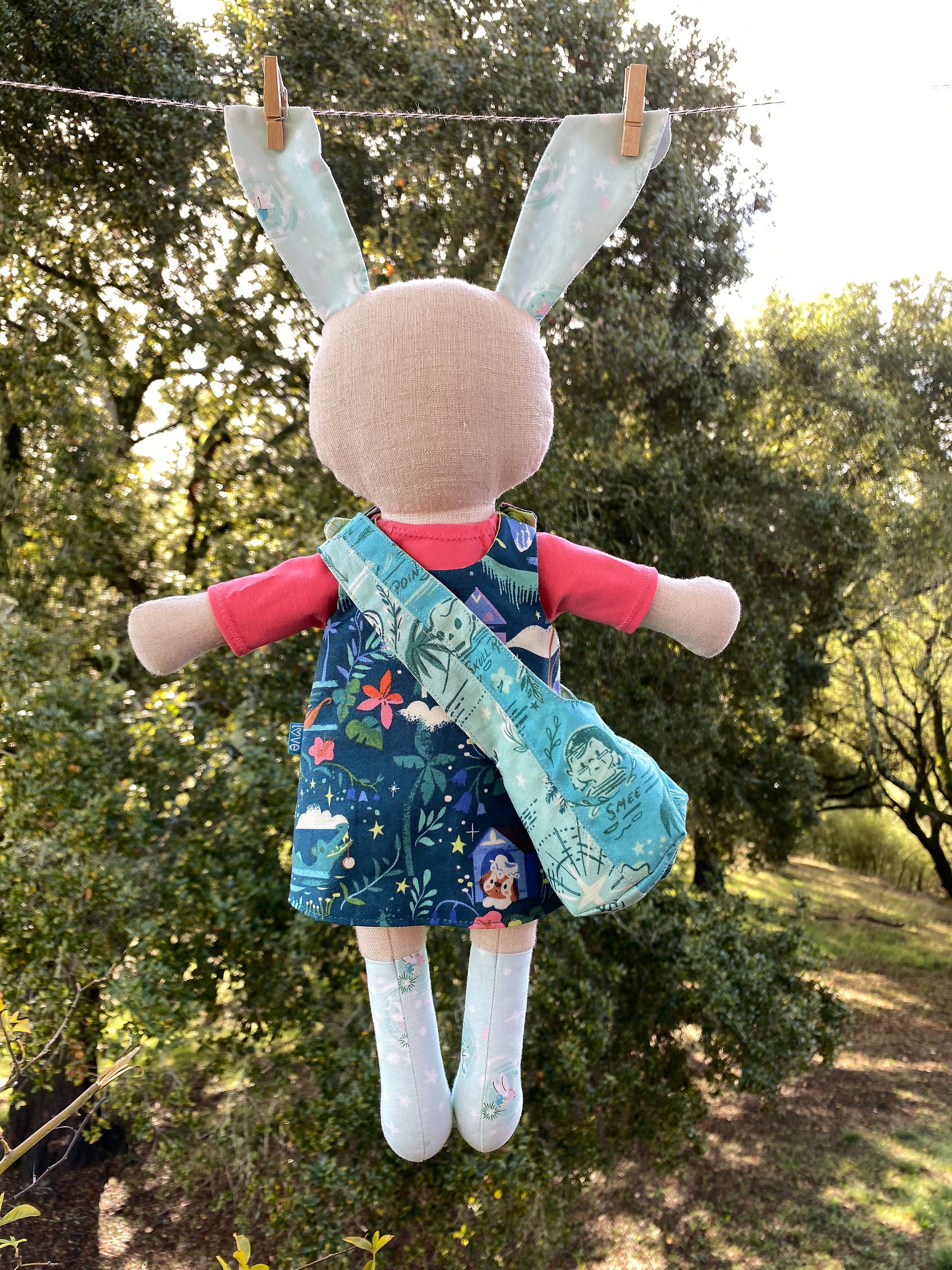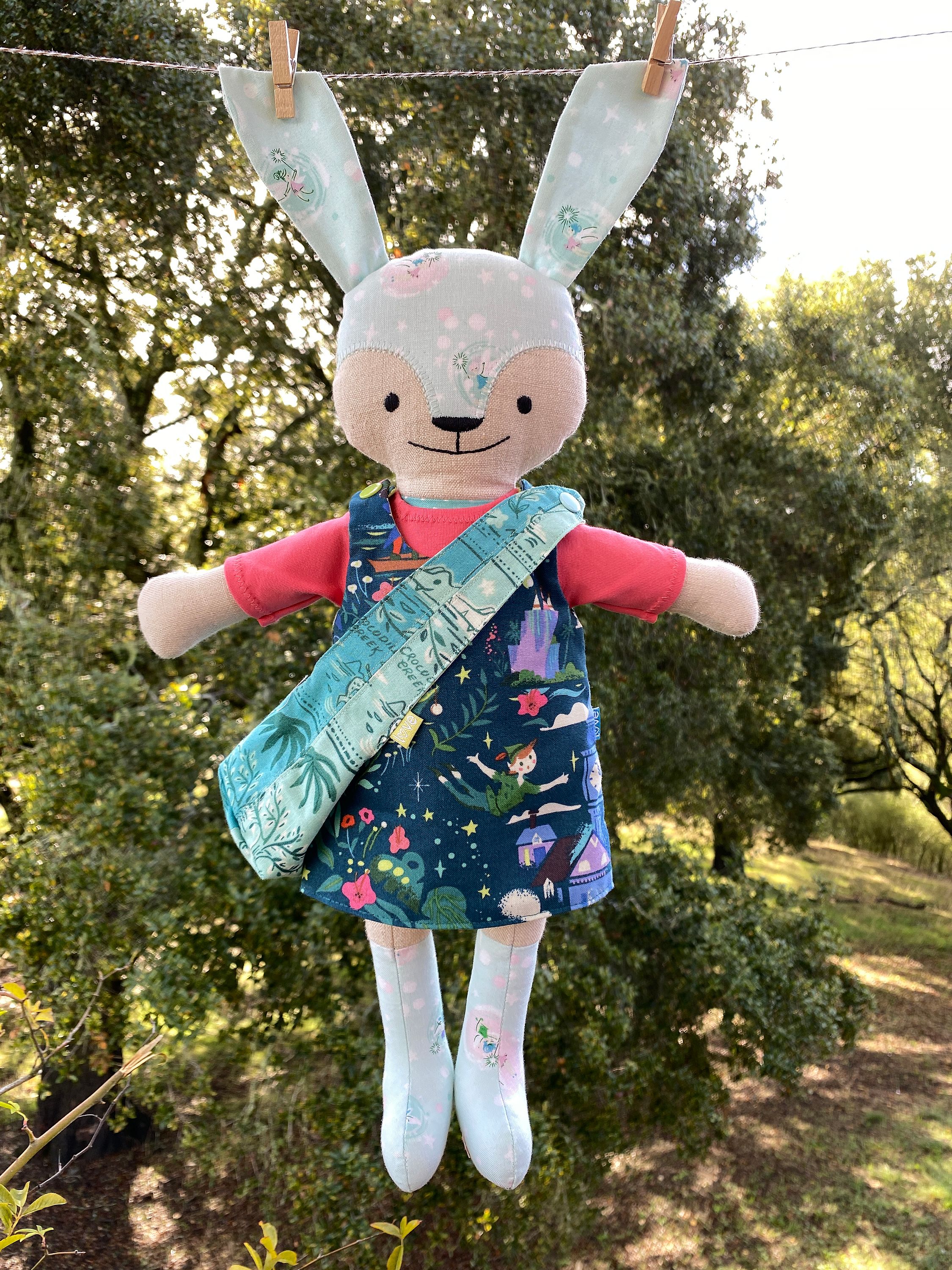 This whimsical 15-inch bunny doll is handcrafted locally with soft linen and enchanting Peter Pan–themed quilt cottons, bringing a dash of Neverland magic to every playtime. With her bright embroidered smile, long expressive ears, and gentle cuddly feel, she’s the perfect companion for little dreamers and big storytellers alike.