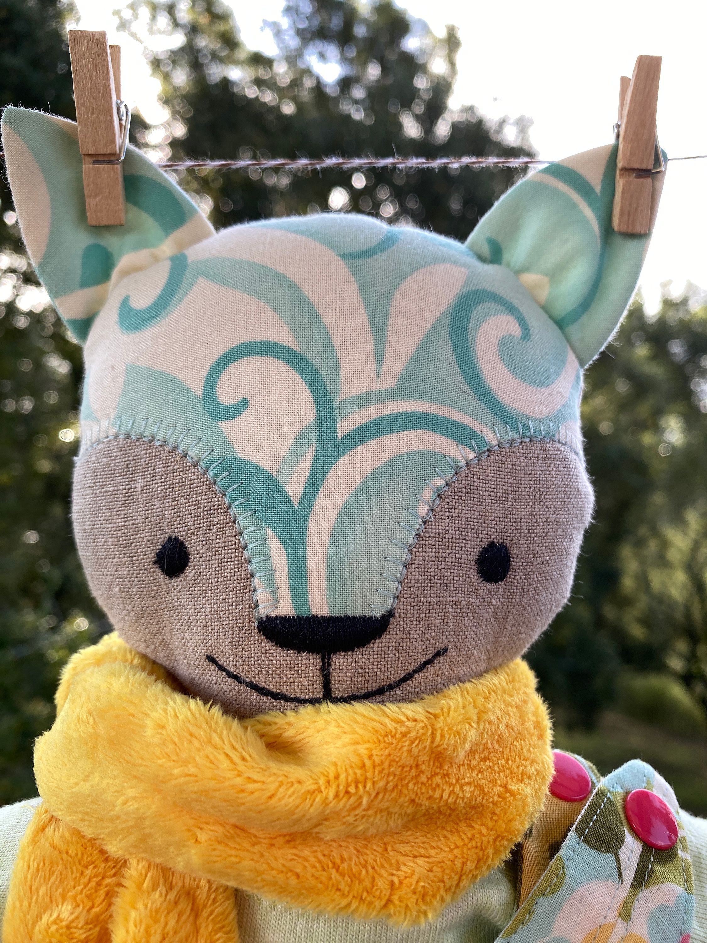 With her sweet embroidered face, perky fabric ears, and beautifully coordinated patterns, this handmade cat brings joy wherever she goes. Whether she’s joining a backyard quest, starring in a make-believe story, or settling in for bedtime cuddles, she adds warmth, whimsy, and fun to every moment.