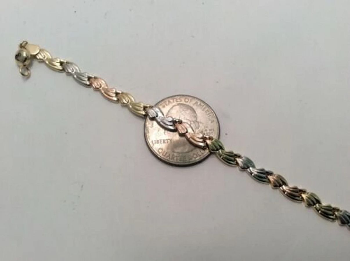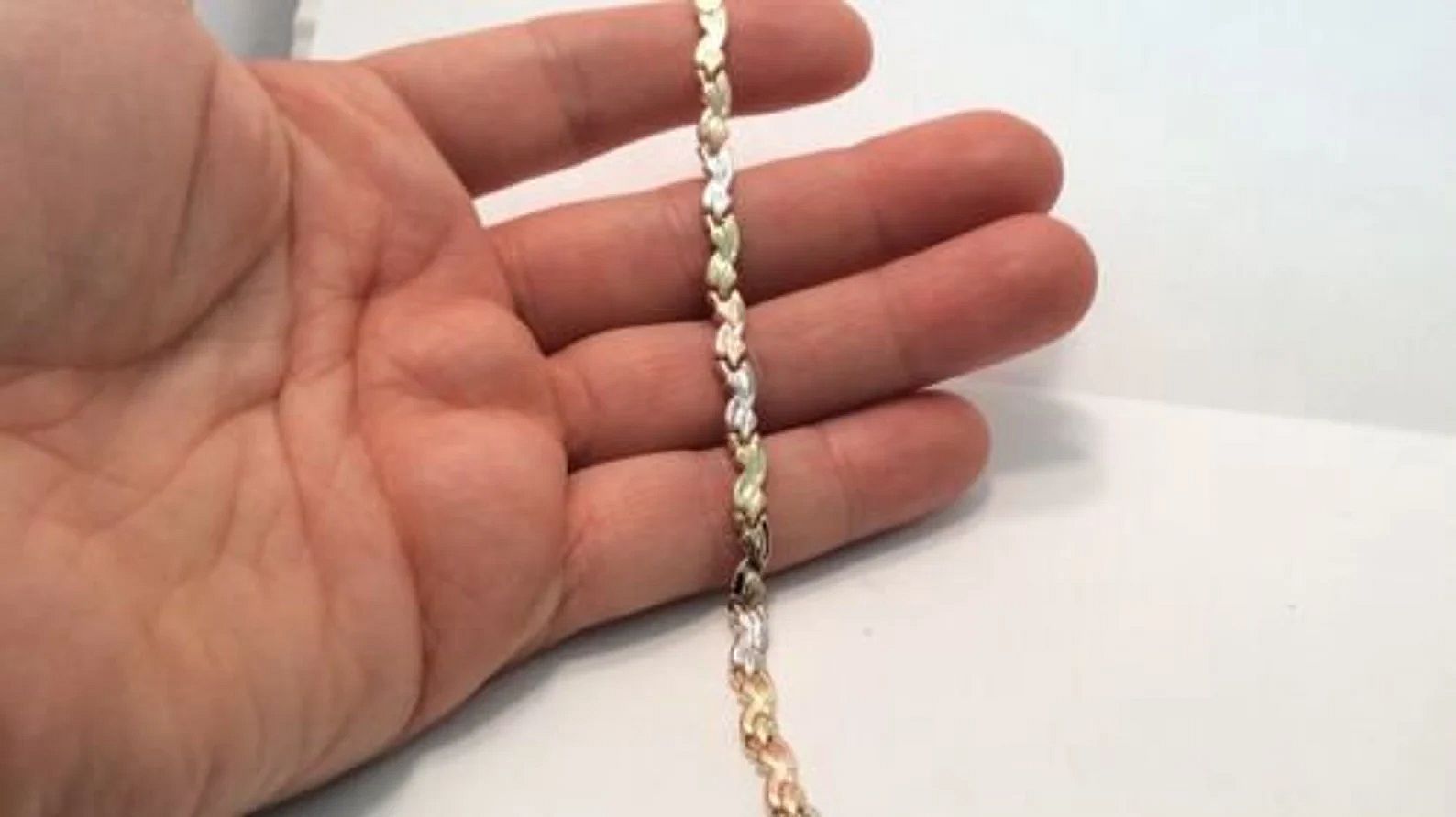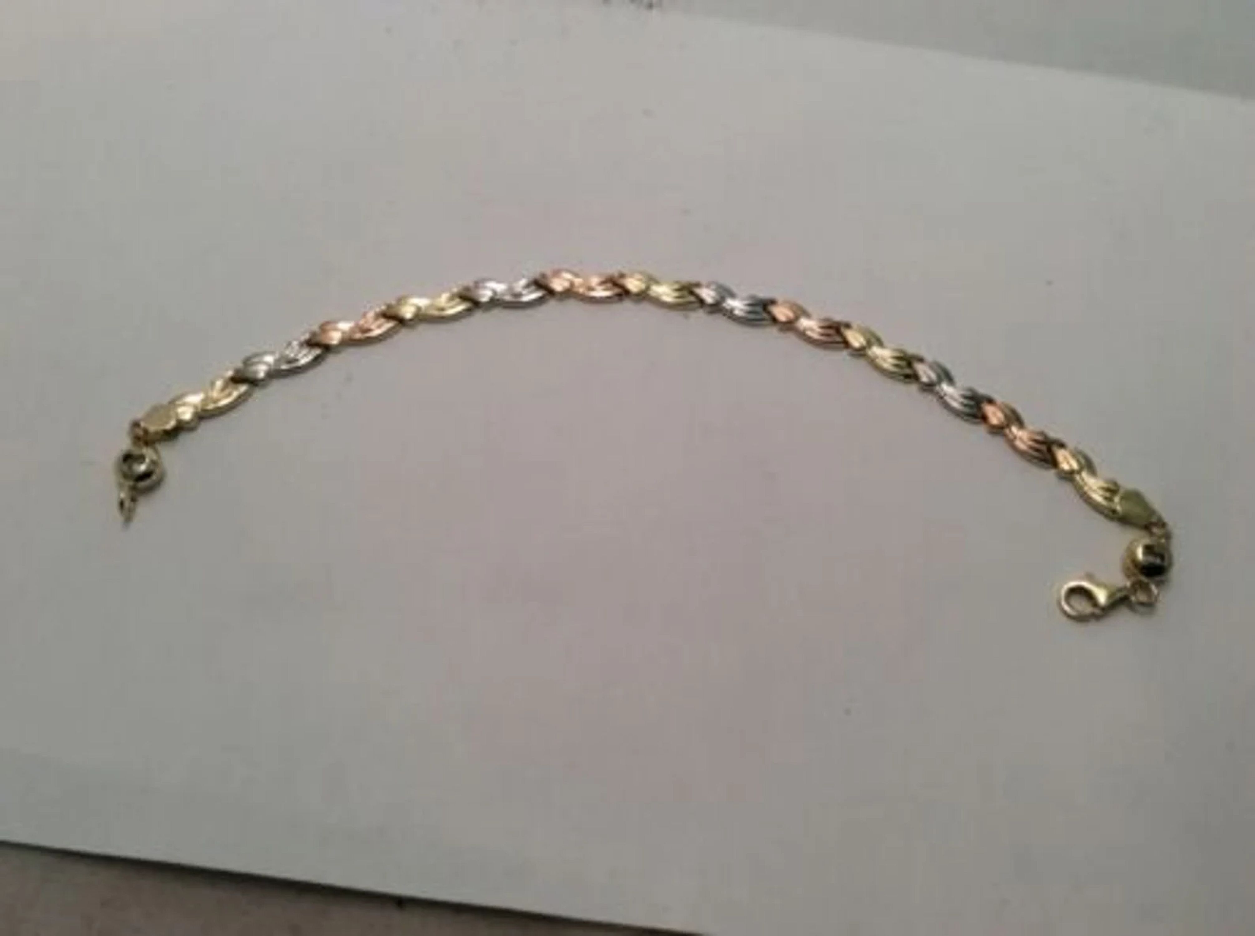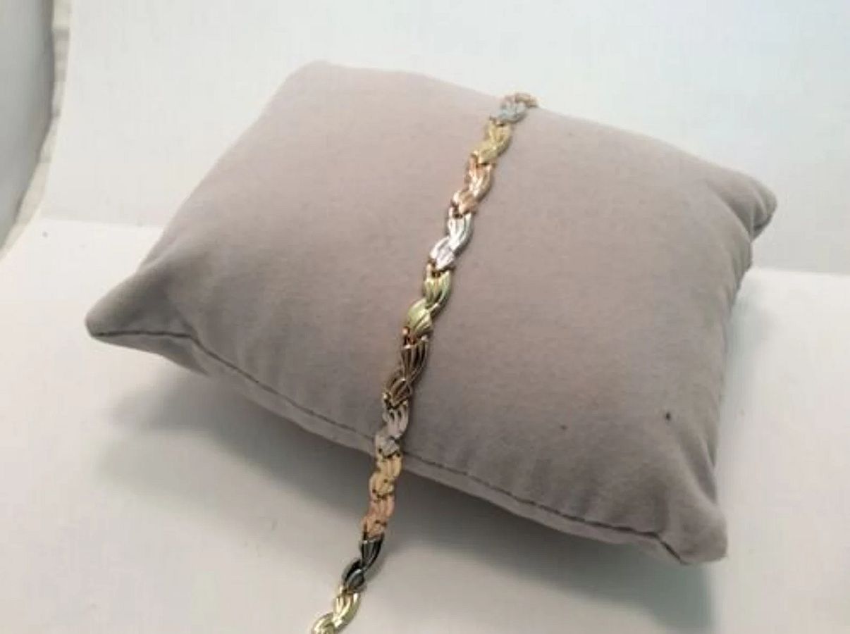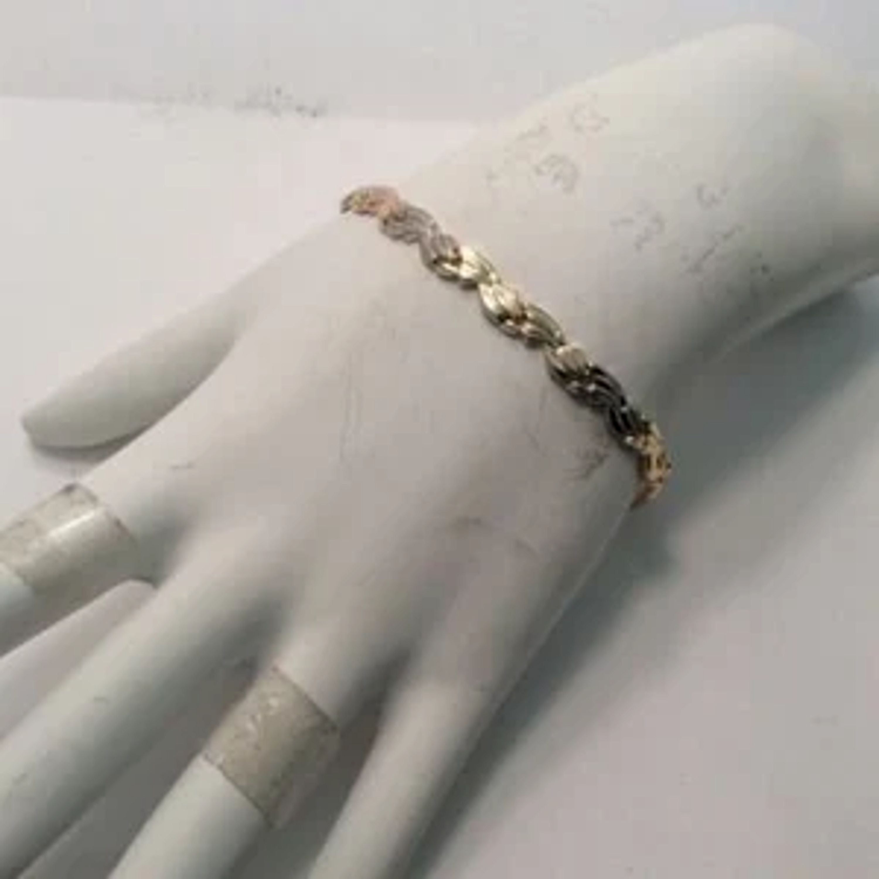 4.10 Grams 5mm Lady's 14k Yellow Tri-Color REAL Solid Gold XO Hearts and Kisses Fancy Bracelet 7 1/4''