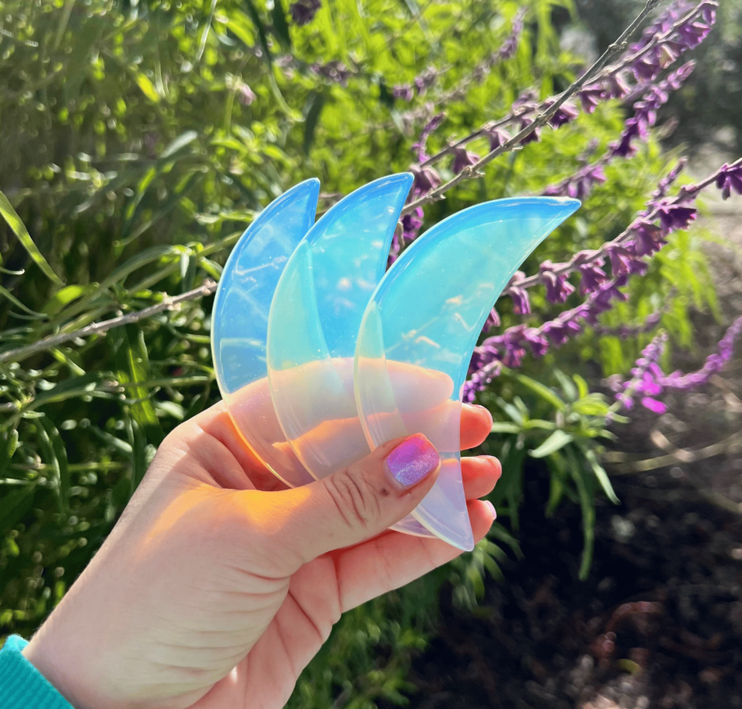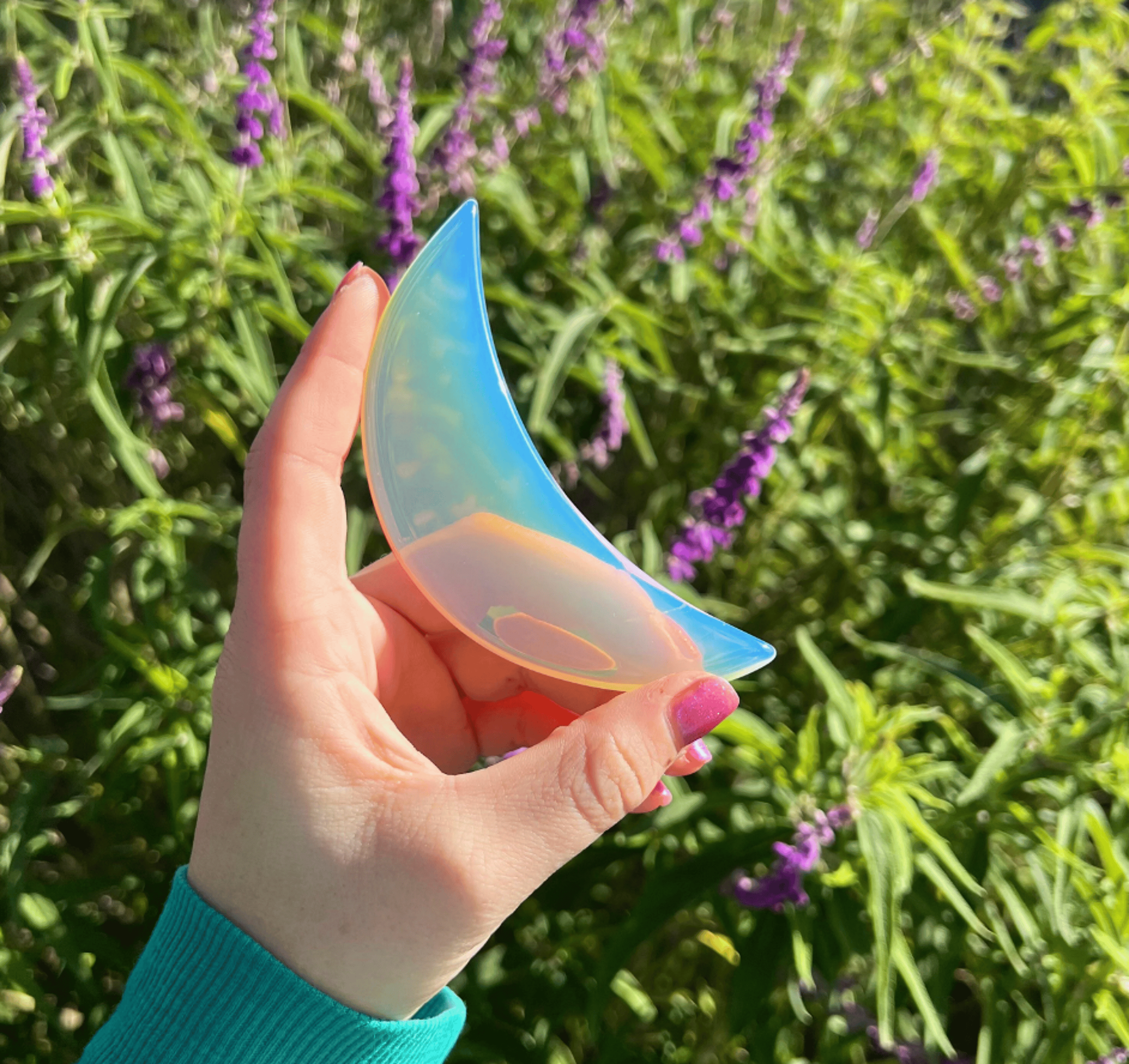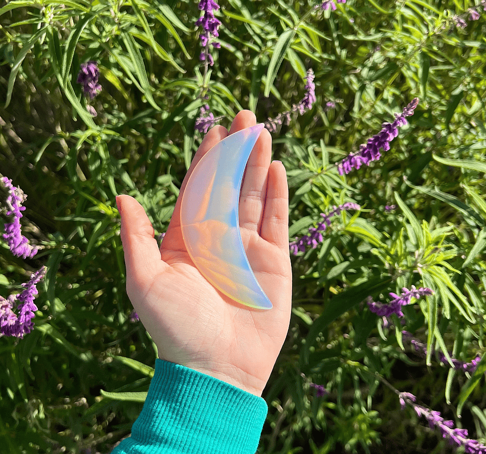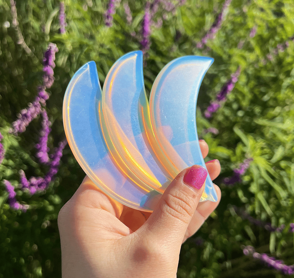 Beautiful Iridescent Opalite Glass Crescent Moon Gua Sha (You will receive 1)