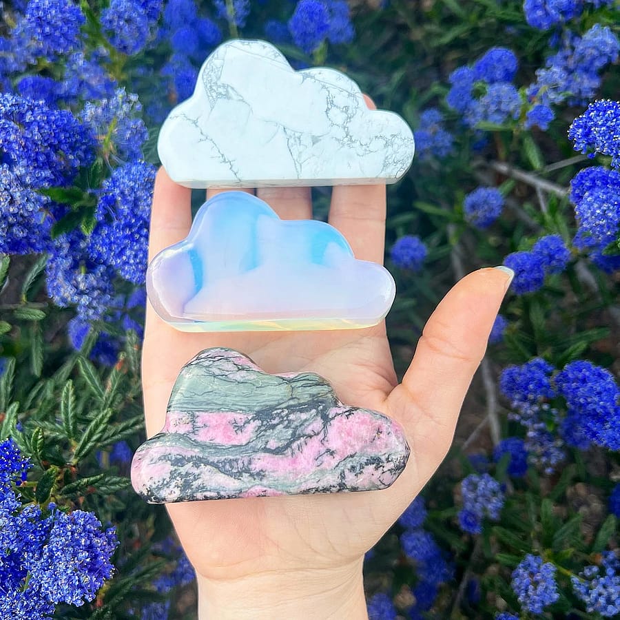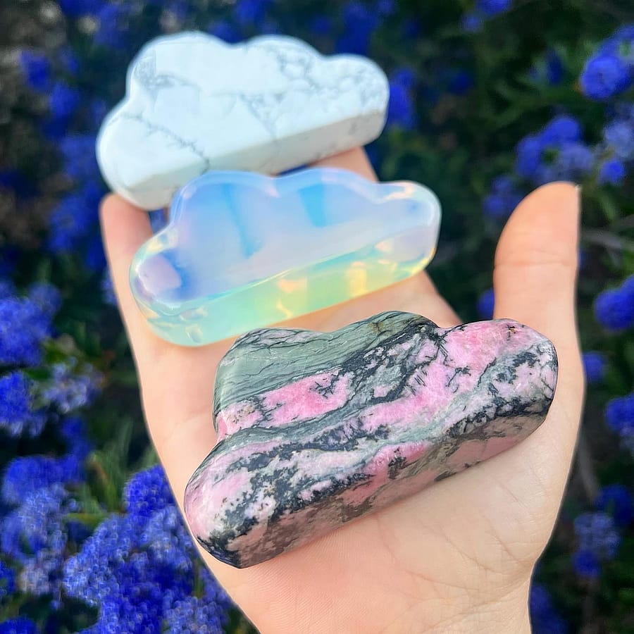 Carved Crystal Stone Cloud Available in White Howlite (Top) or Rhodonite (Bottom)