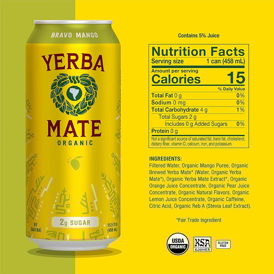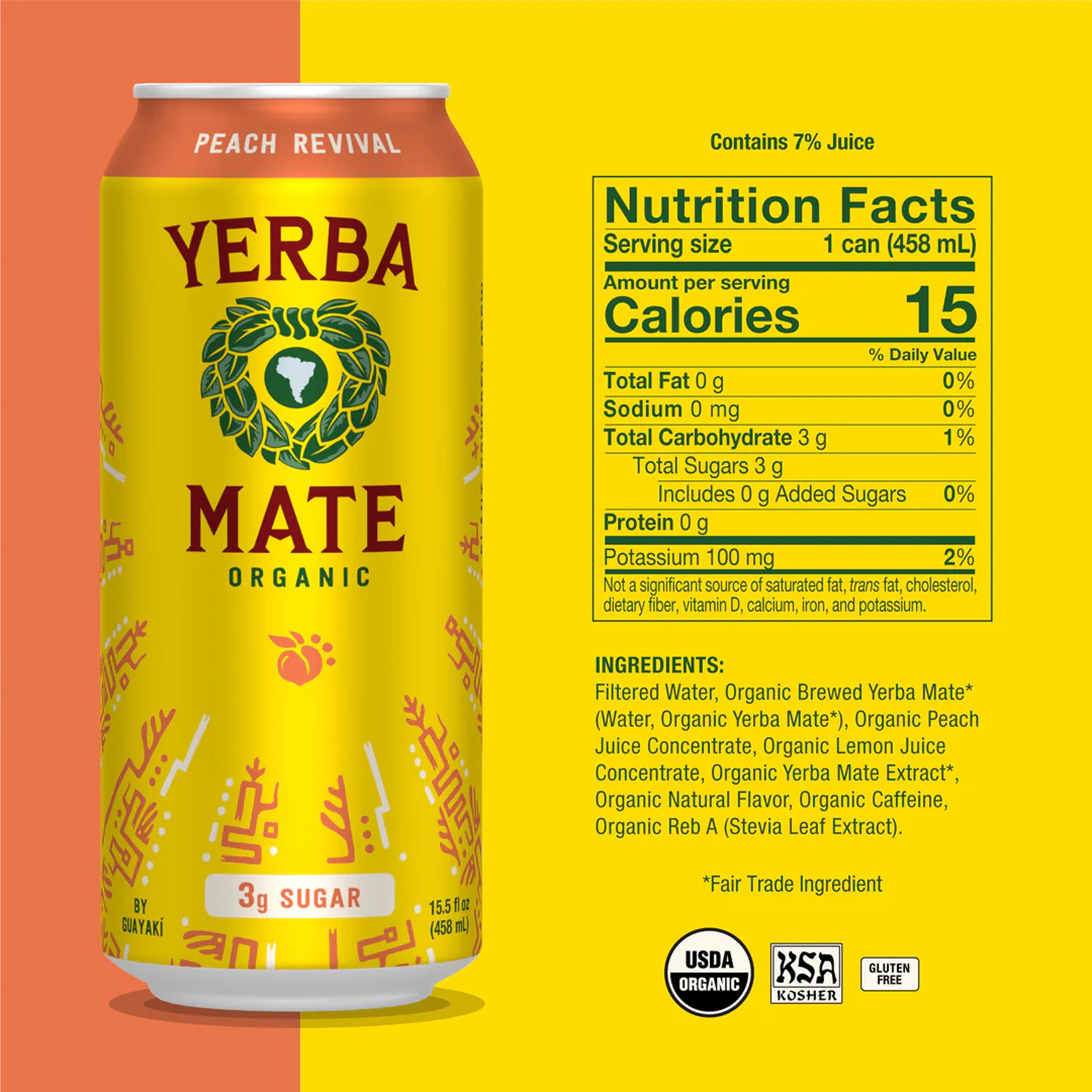 Yerba Madre's ready-to-drink cans, without any added sugar, organic yerba mate beverage - caffeinated, certified organic and made with select fair trade ingredients.