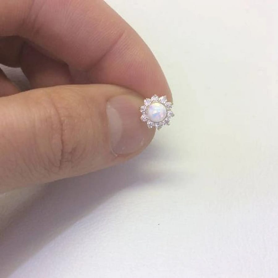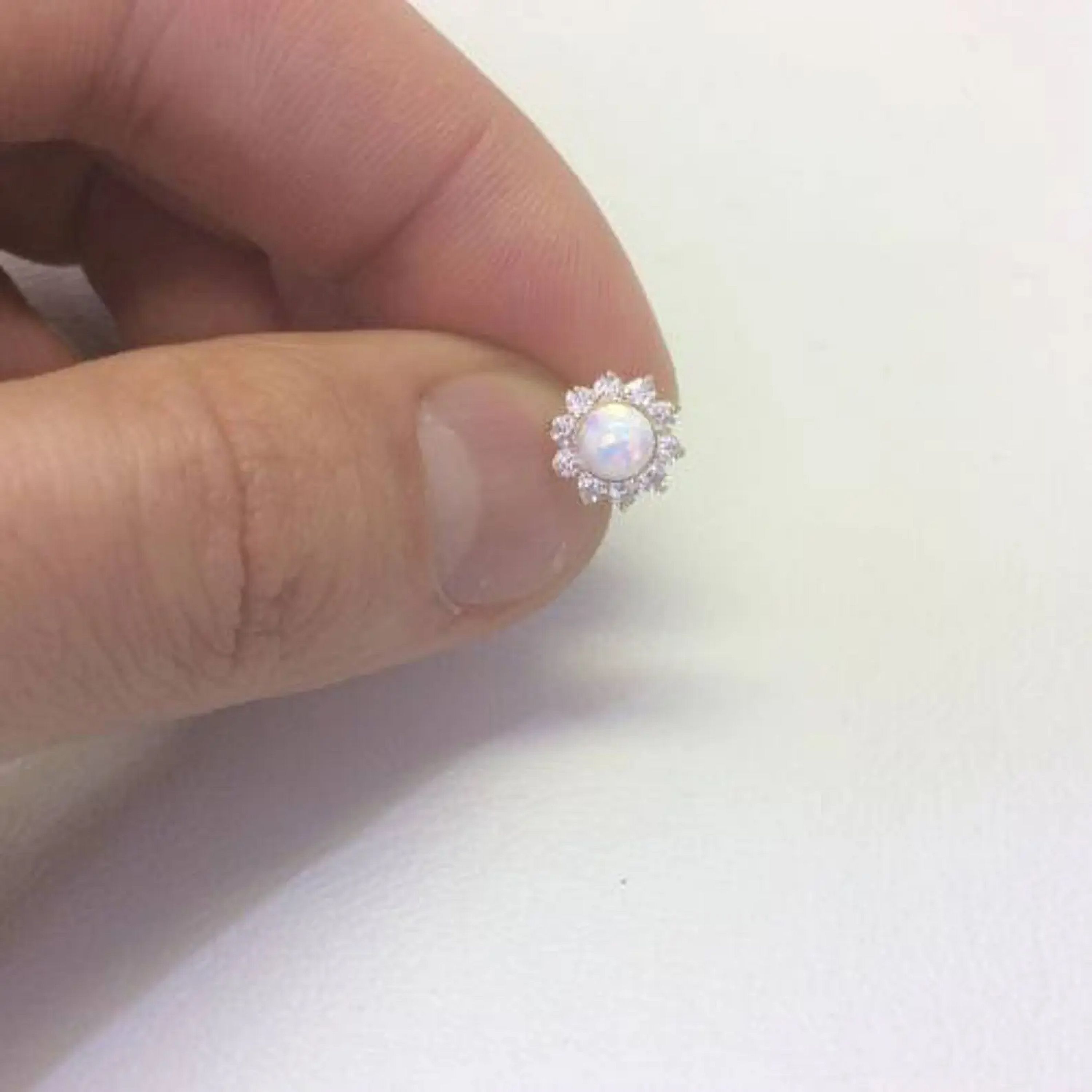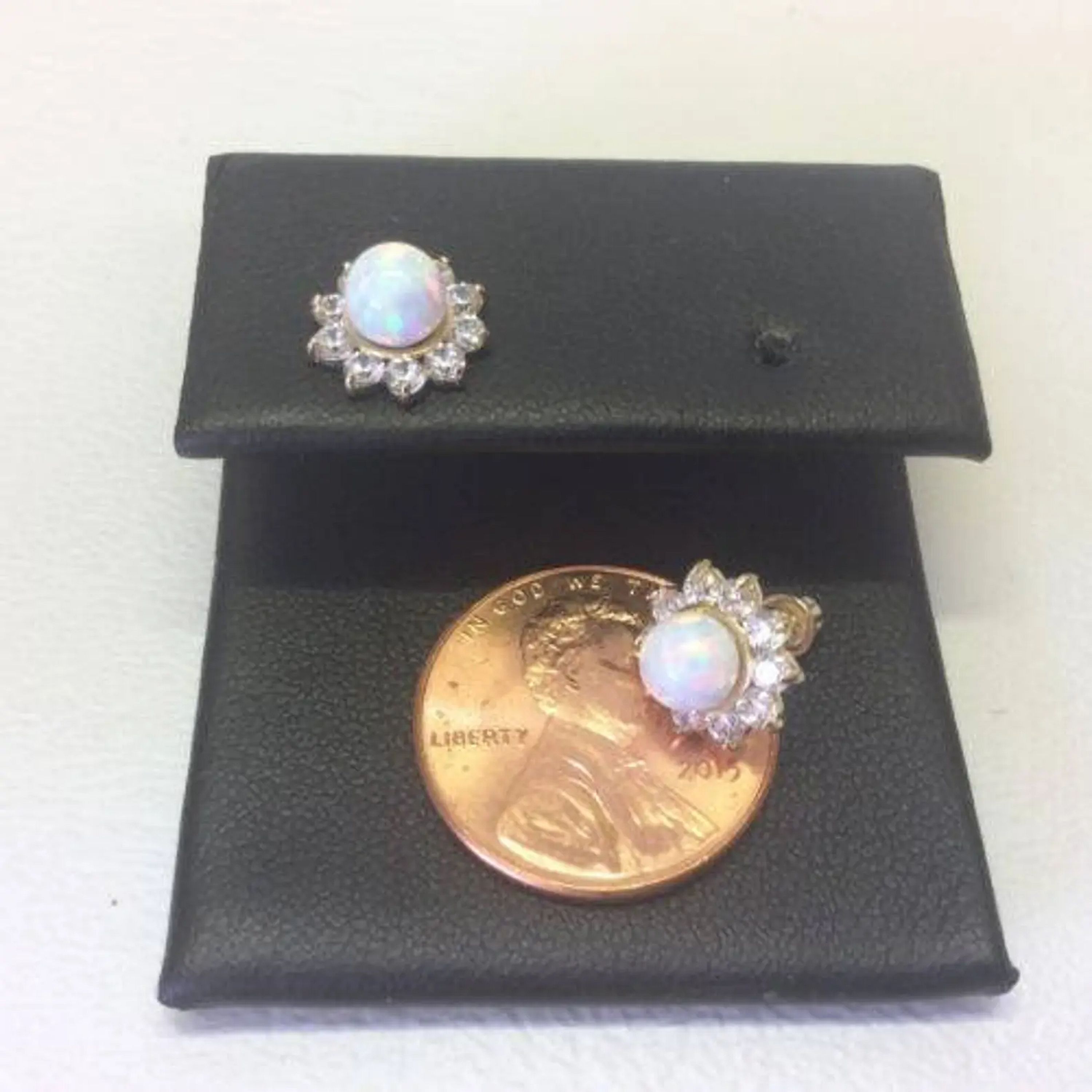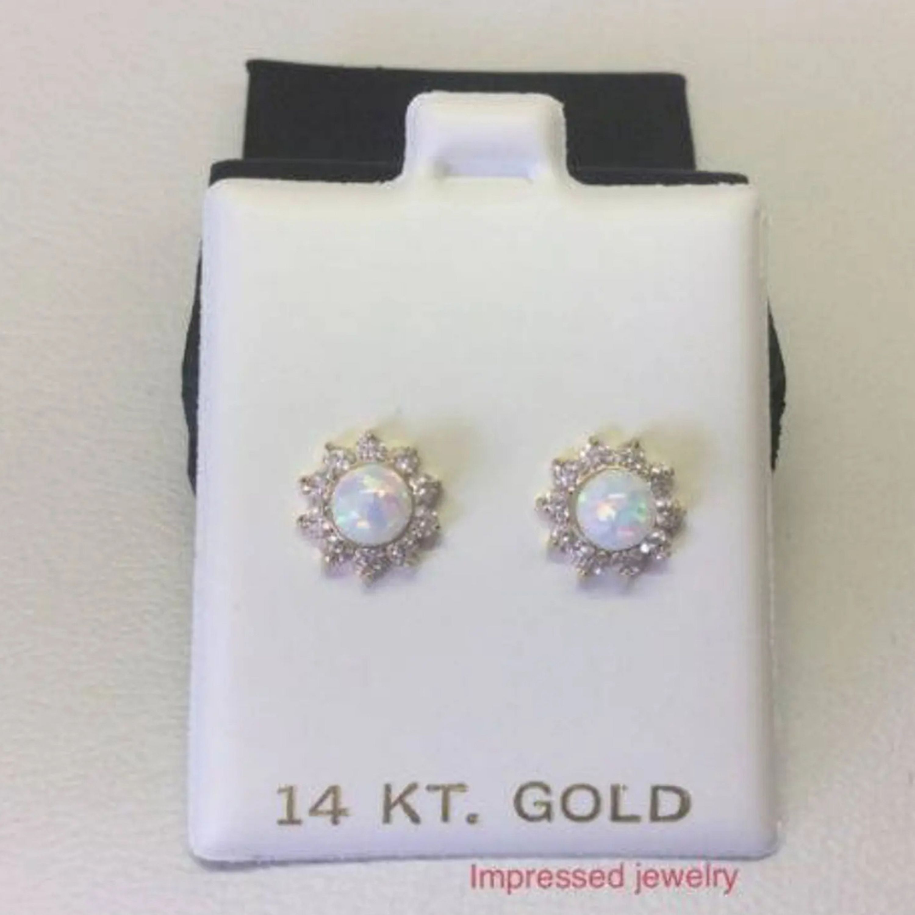 Women/Children's Stylish 14K Solid Yellow Gold Opal Stud Screw Back Cz Earring