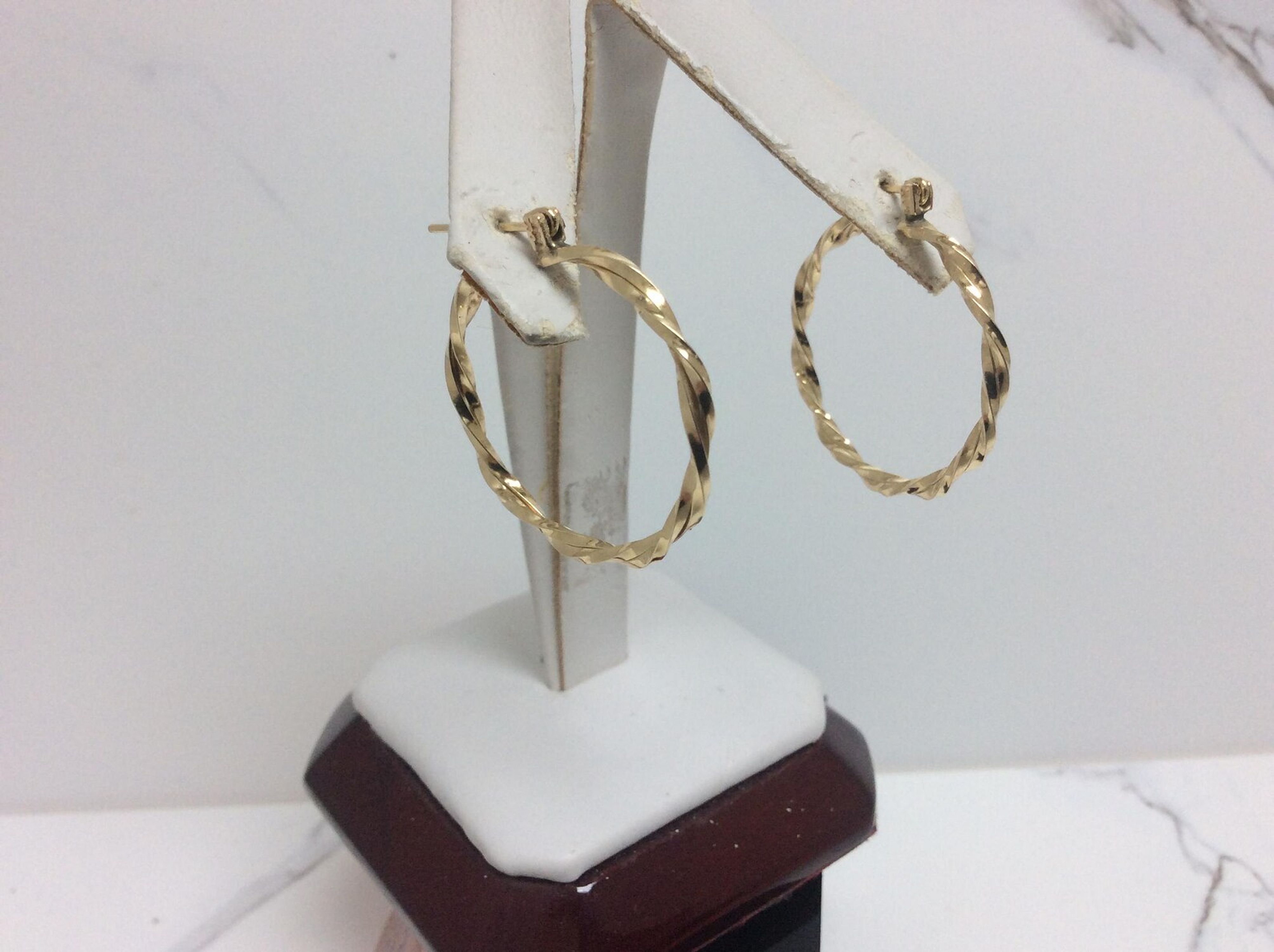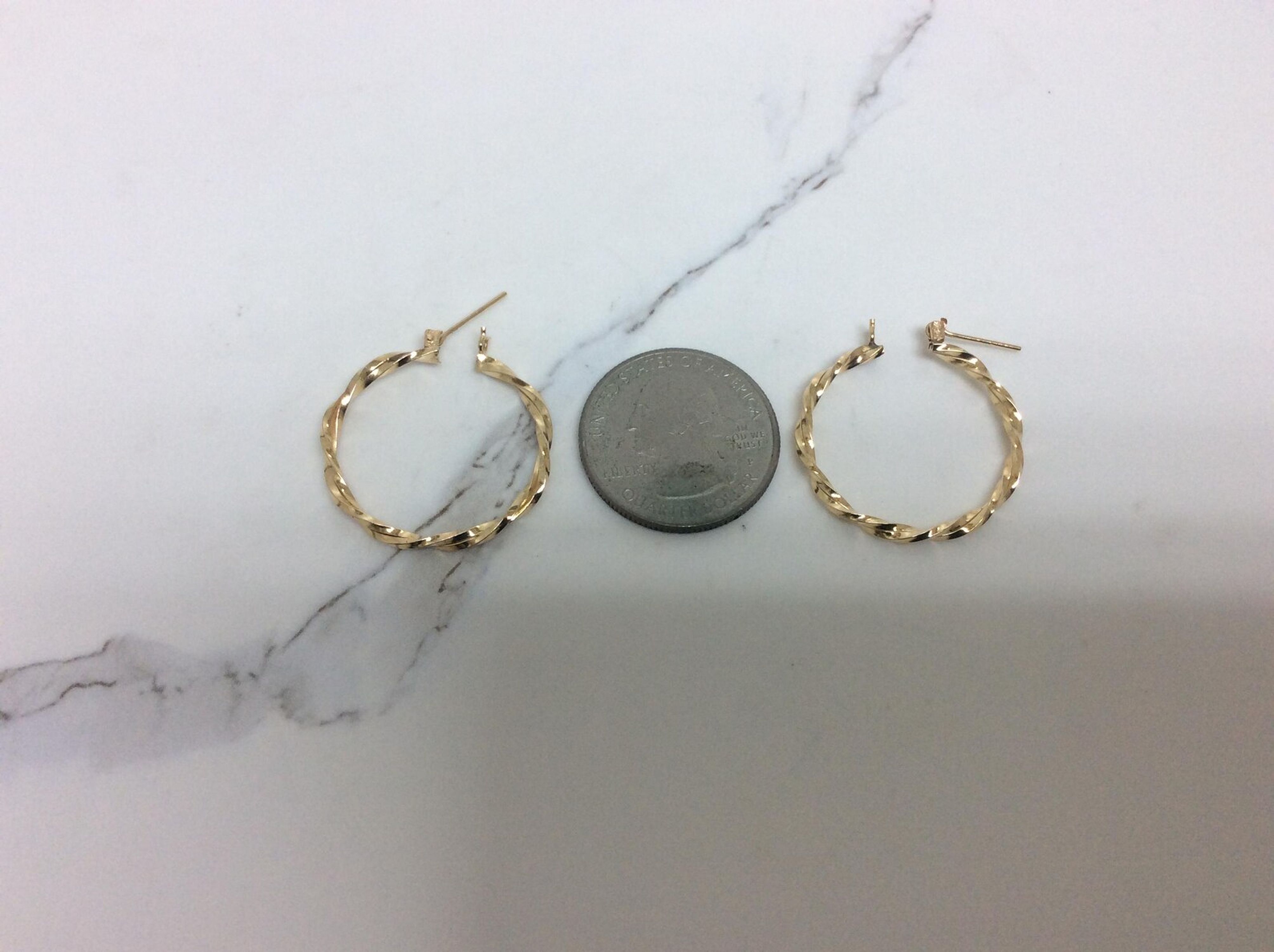 14K YELLOW Real GOLD POLISHED PLAIN TWISTED HOOP EARRINGS 1'' 2.00 GRAMS