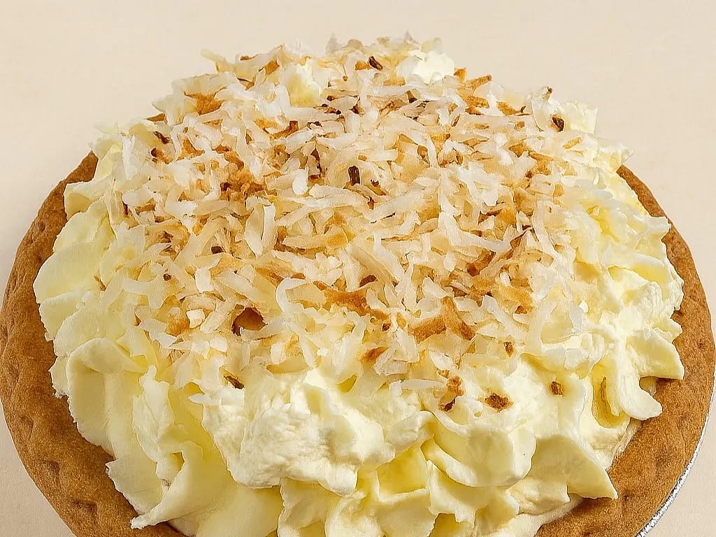 Product Description: A velvety coconut custard pie crowned with hand-whipped cream and delicate toasted coconut for a tropical finish Allergen Information: This product contains: Dairy, Eggs, Wheat, Gluten