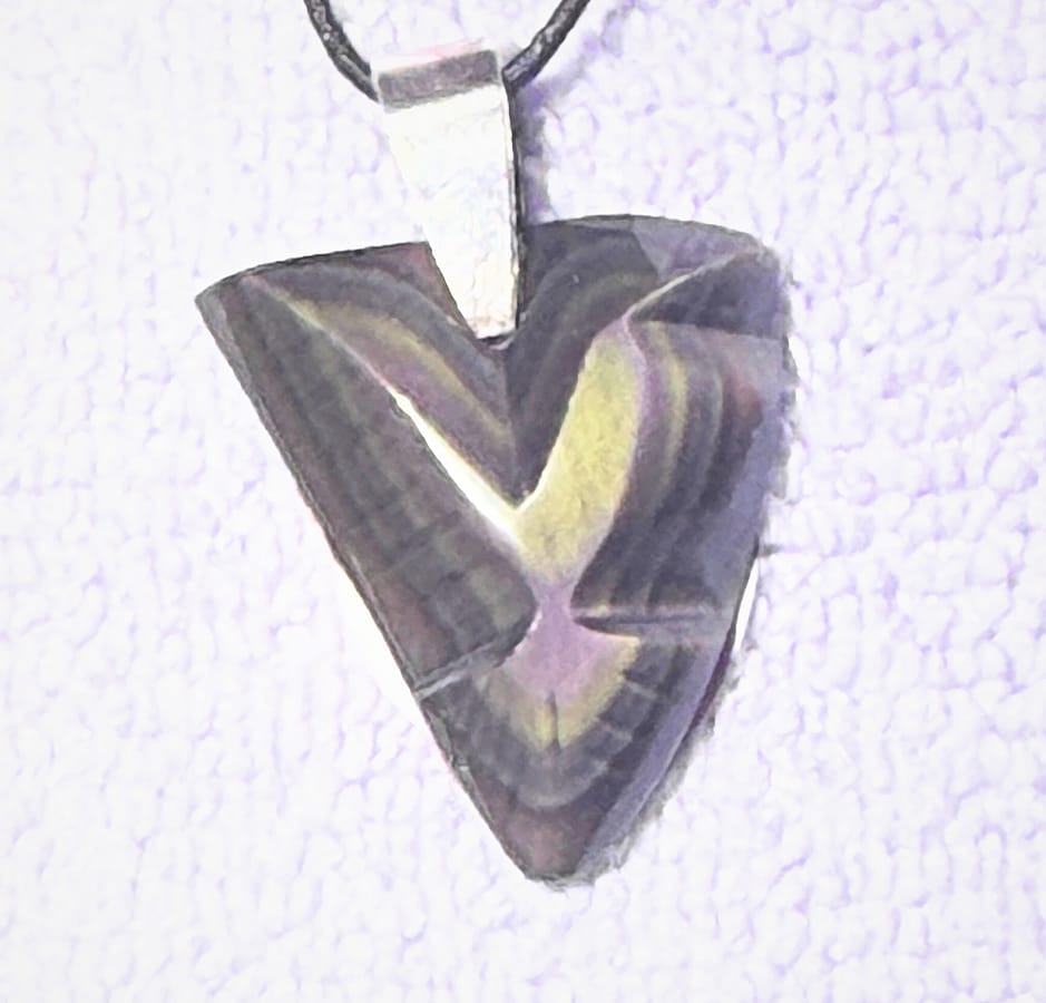 This stunning pendant is crafted from genuine Rainbow Obsidian, known for its protective energy and its ability to gently release emotional, physical, and spiritual blockages. Each piece reveals beautiful natural color bands that make every pendant truly unique.