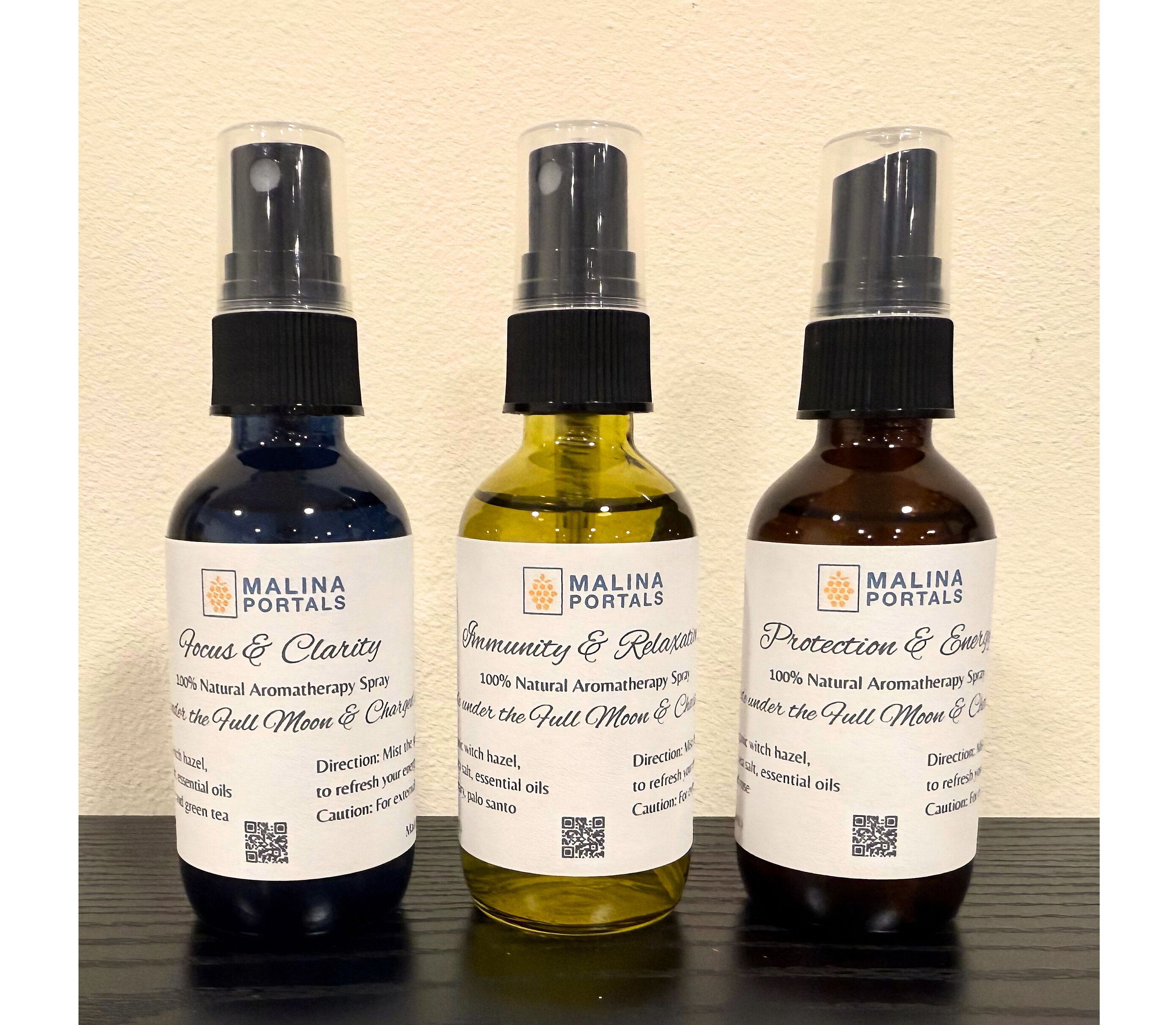 Elevate your space and spirit with our handcrafted aromatherapy spray. Each bottle is created under the Full Moon and infused with Reiki energy to enhance harmony, grounding, and intention.