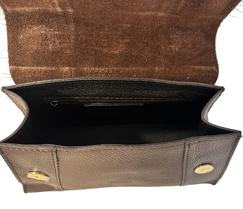 Indulge in luxury with Tatiana, the must-have dark chocolate leather bag with a chic fur detail. Its top handle and removable shoulder strap provide versatility while the inside zipper& ensures organization. Upgrade your style and stand out from the crowd with Tatiana.