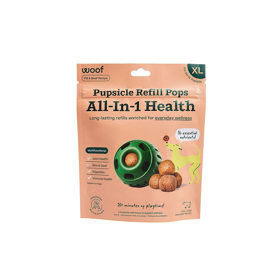 Pupsicle Refills provide pre-made, lickable treat pods that snap right into your Pupsicle toy for easy, no-mess fun. They come in a variety of flavors made with dog-safe ingredients — just pop them in the freezer and enjoy hours of treat-filled engagement.