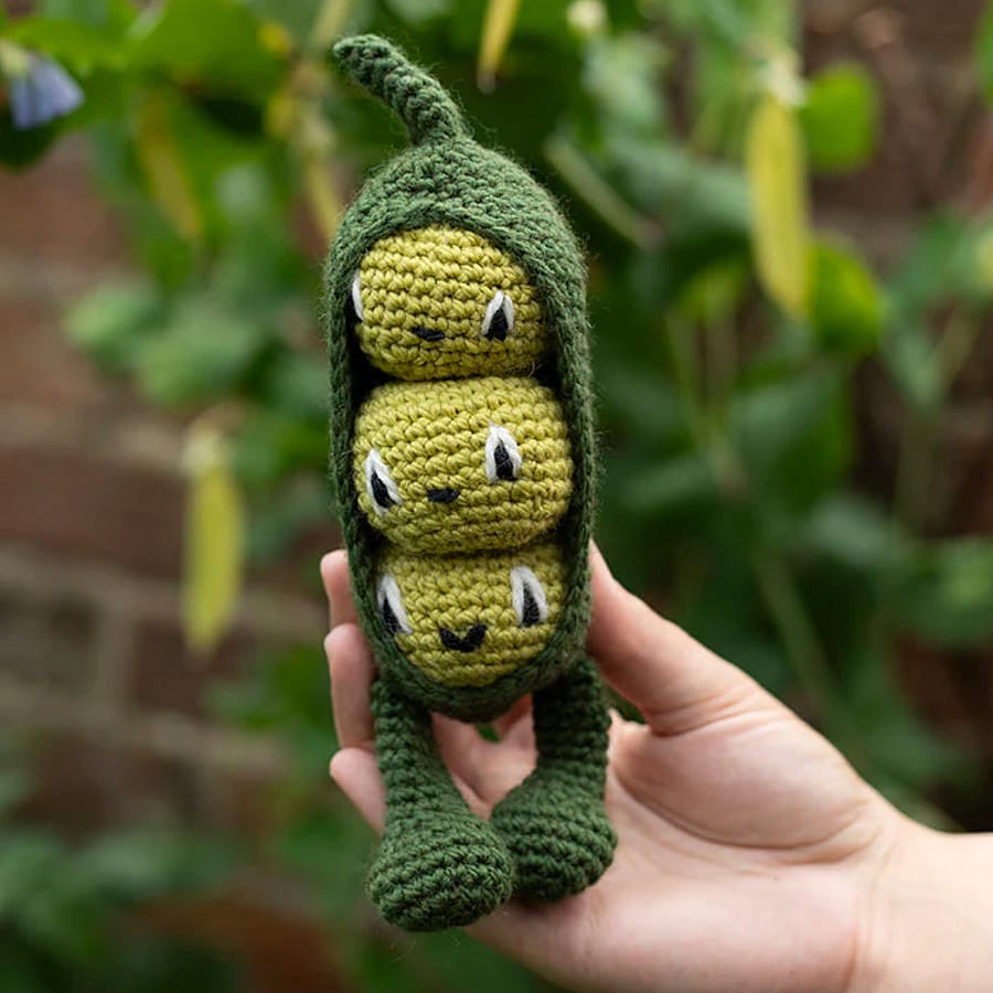 Peas are a staple low maintenance vegetable in any allotment or vegetable patch, and you can now crochet your own version for fun! With removable peas and a separate pod to crochet, you'll have so much fun interacting with your project once it's complete, and you won't be able to resist filling a whole trellis with these cute peas.