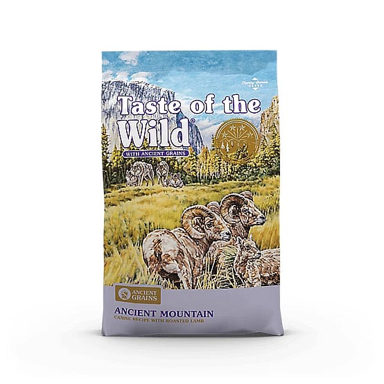 Taste of the Wild Ancient Mountain Canine Recipe features pasture‑raised lamb as its primary protein, blended with ancient grains such as sorghum, millet, quinoa, and chia seed for a fiber- and nutrient-rich formula. Infused with K9‑Strain probiotics, antioxidant-rich fruits (like blueberries and raspberries), and balanced omega fatty acids, this recipe supports digestion, immune health, and a shiny coat.