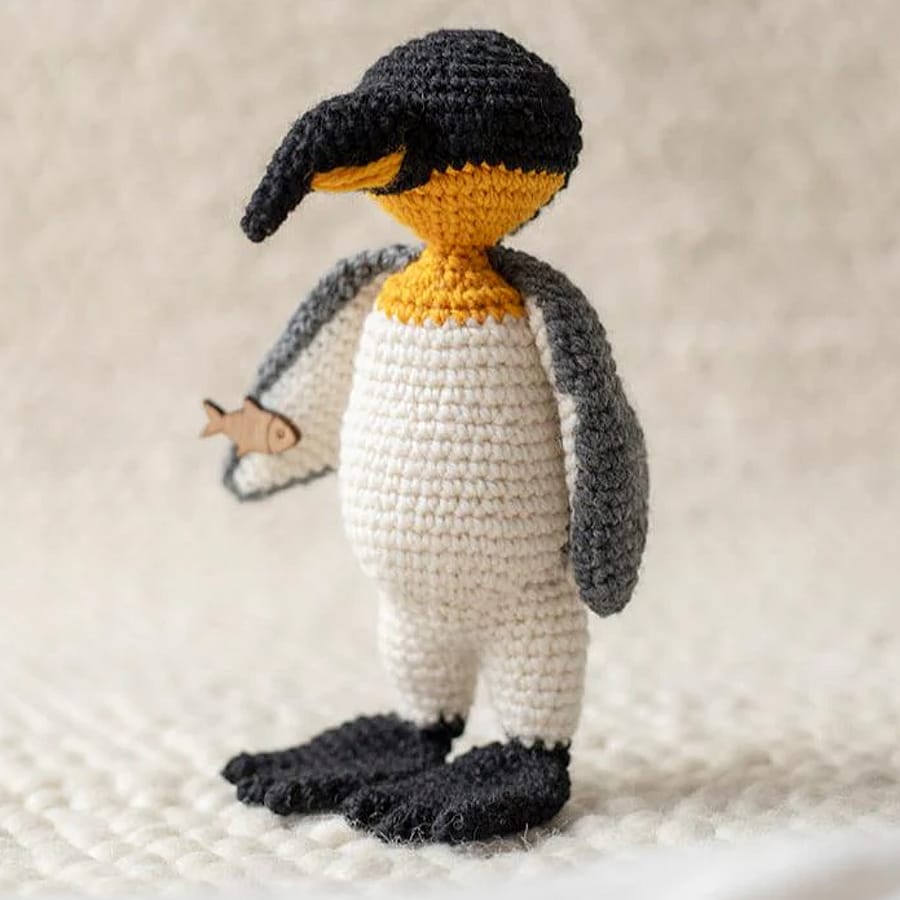 Not to be confused with the Emperor Penguin, Raegan the King Penguin is a crochet version of the second largest species of penguin. This flightless bird is known for its huge colonies where you can find up to 100,000 breeding pairs – and their chicks look distinctively different to those of their cousins, covered with dark brown feathers rather than a silvery-grey down.