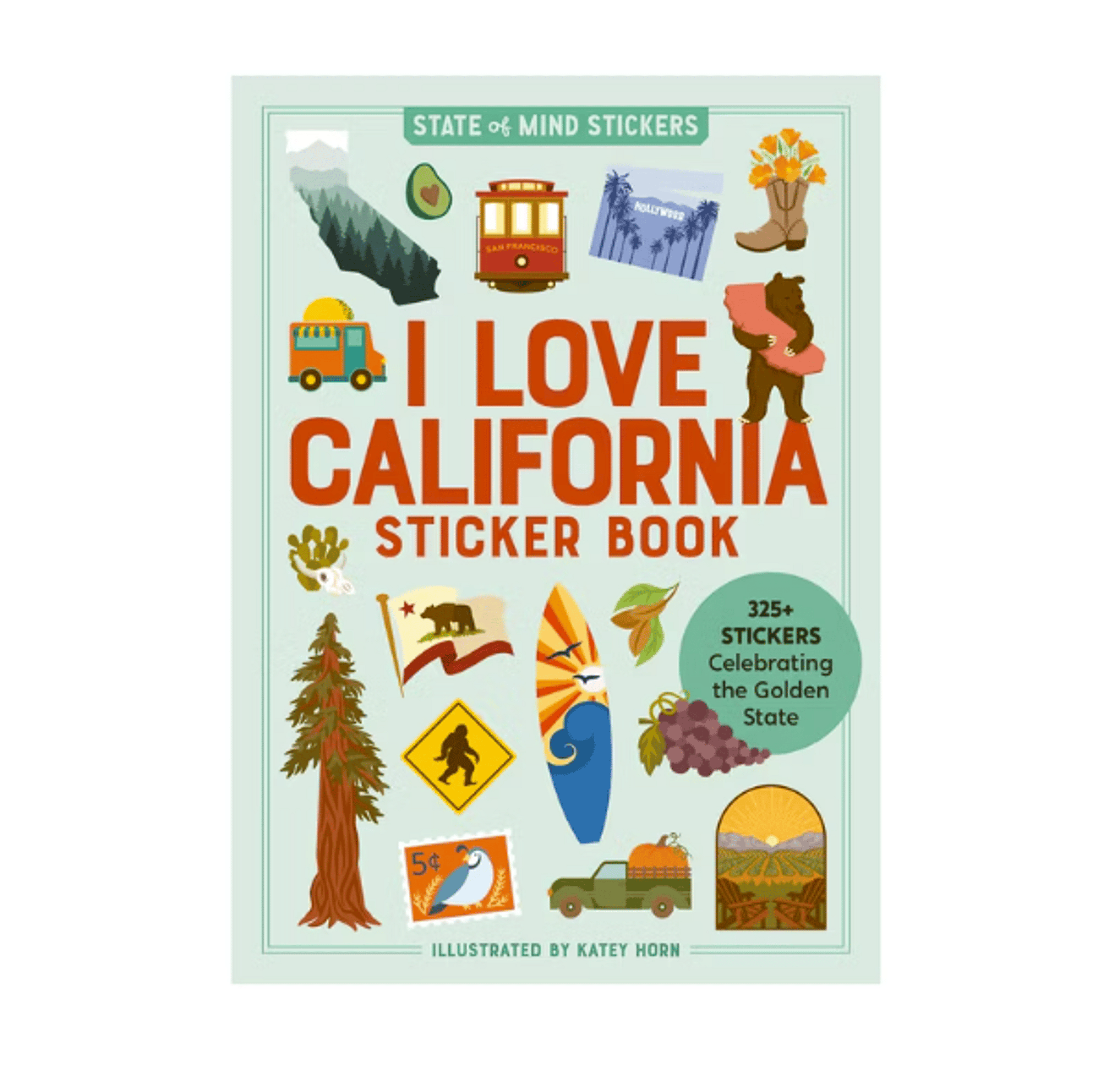 Celebrate the Golden State with the I Love California Sticker Book — over 325 illustrated stickers featuring California landmarks, wildlife, food, and more. A fun, retro-style way to geek out over redwoods, poppies, grizzlies, and the Golden Gate.