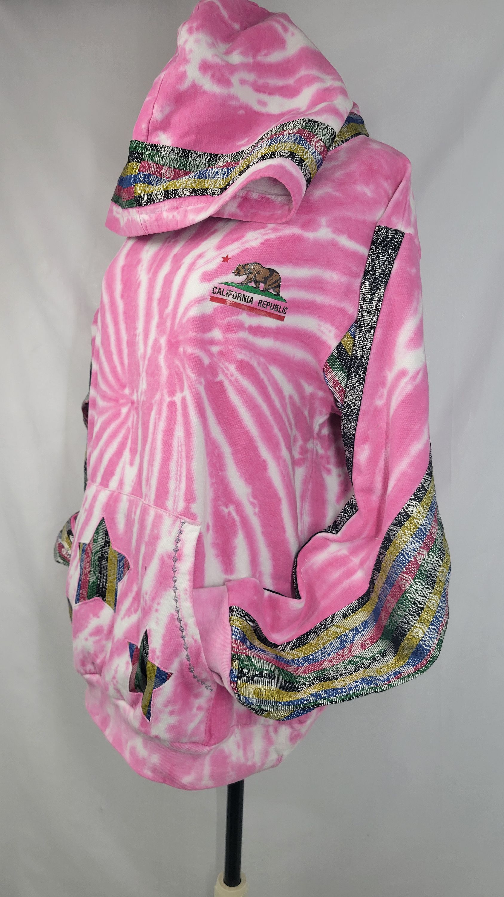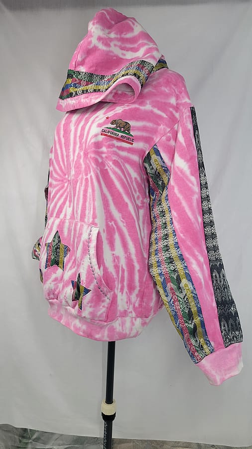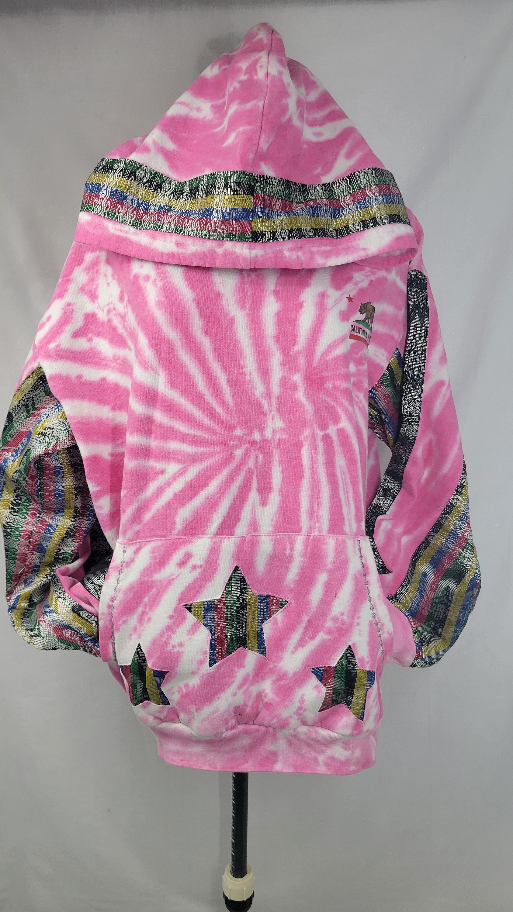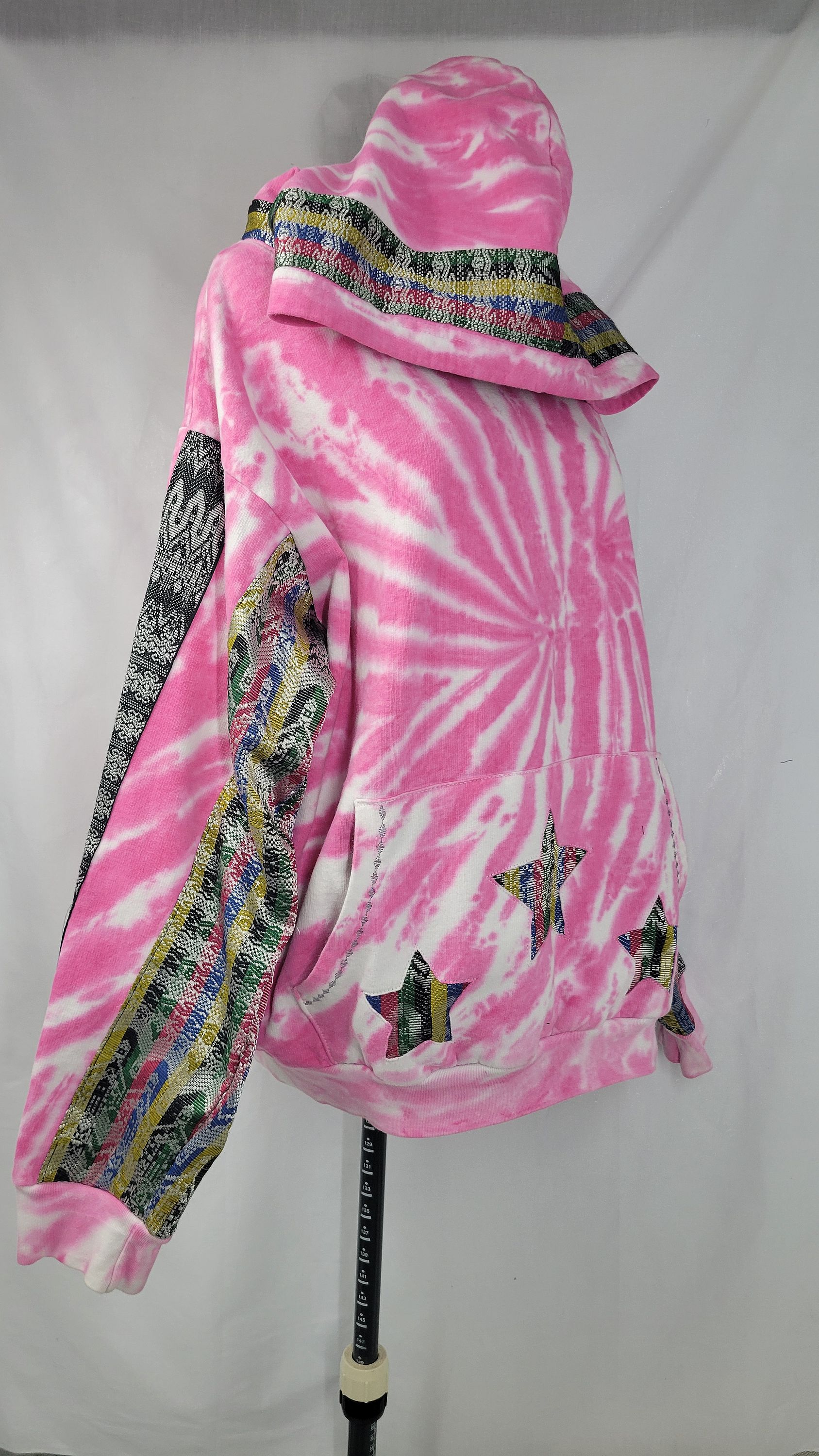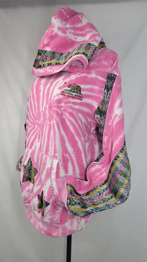 Live life with the boldness of Tie Dye, stars, and stripes! This Up-Cycled Woman’s Pullover Hoodie – Tie Dye Stars & Stripes is decorated with cut away stars and stripes made of 100% Indonesian cotton.