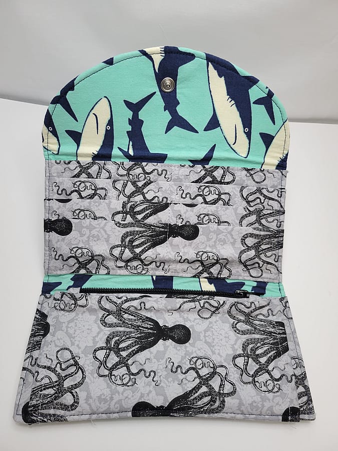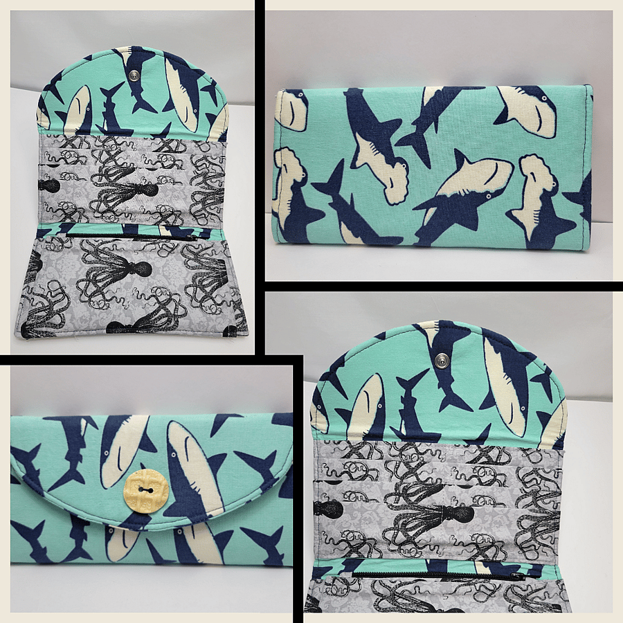 With a 6-card organizer, zipper pouch and accordion pocket, this wallet offers plenty of carrying capacity for business/credit cards, cash, change, and even cell phones, all in a sleek tri-fold design. A button-snap closure keeps your doubloons secure, and a sewn-in accent button keeps you looking cute.