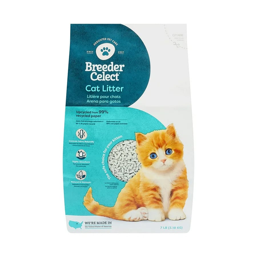 This non-clumping cat litter is made from 99% recycled paper, forming ultra-absorbent white pellets that naturally trap moisture and odors. Soft on paws and virtually dust-free, it’s free from chemicals or additives—ideal for kittens, multi-cat homes, or cats with respiratory sensitivities.