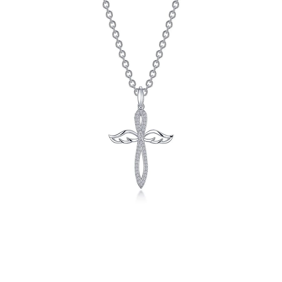 0.74 CTW Angel Wings Cross Necklace