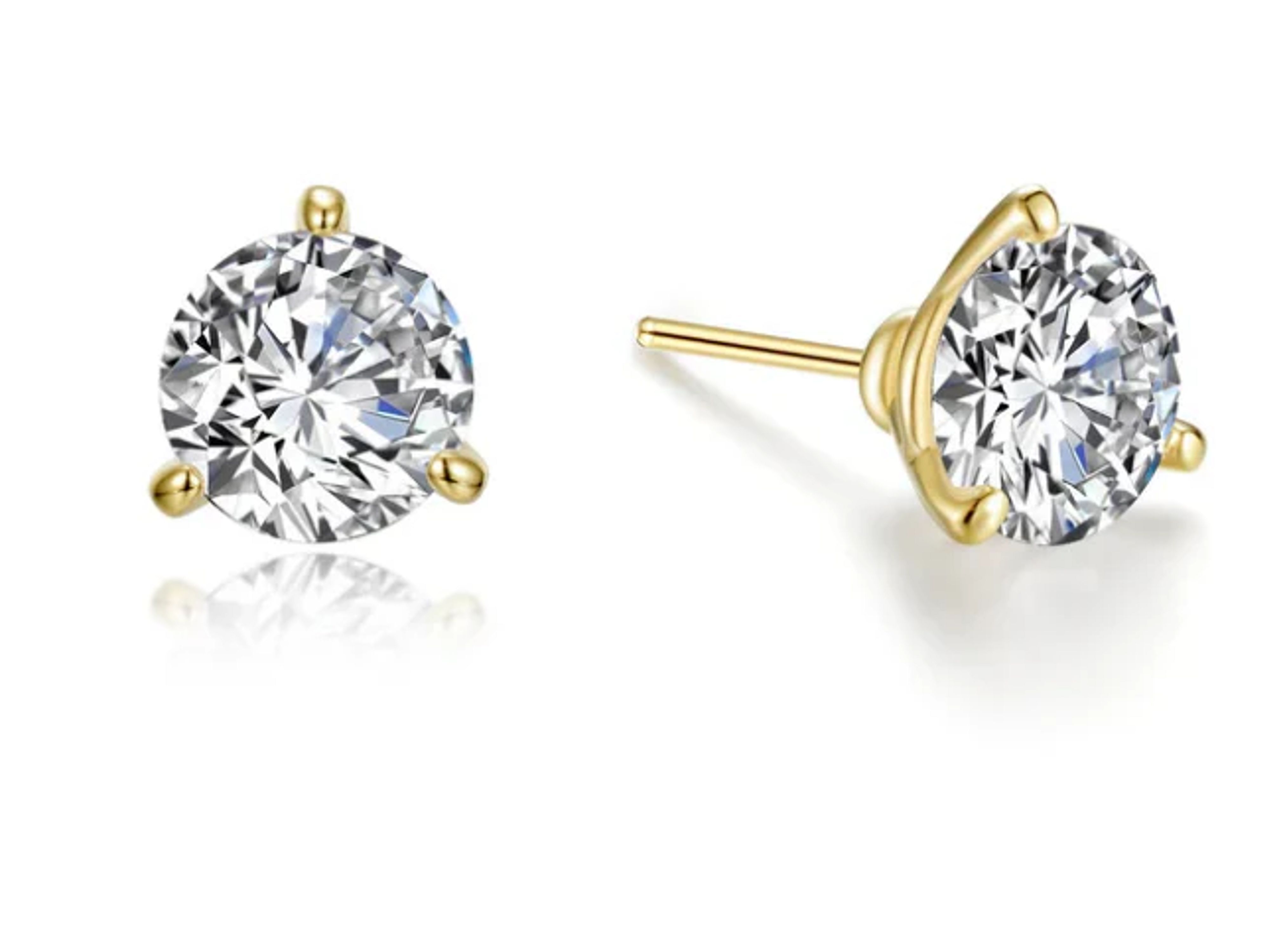 Timeless classics for everyday wear. These martini solitaire studs are set with Lafonn's signature Lassaire simulated diamonds in sterling silver using Lafonn's exclusive TR Gold, a new and improved plating process that preserves the rich color of gold and enhances the wearability of our gold-plated styles.