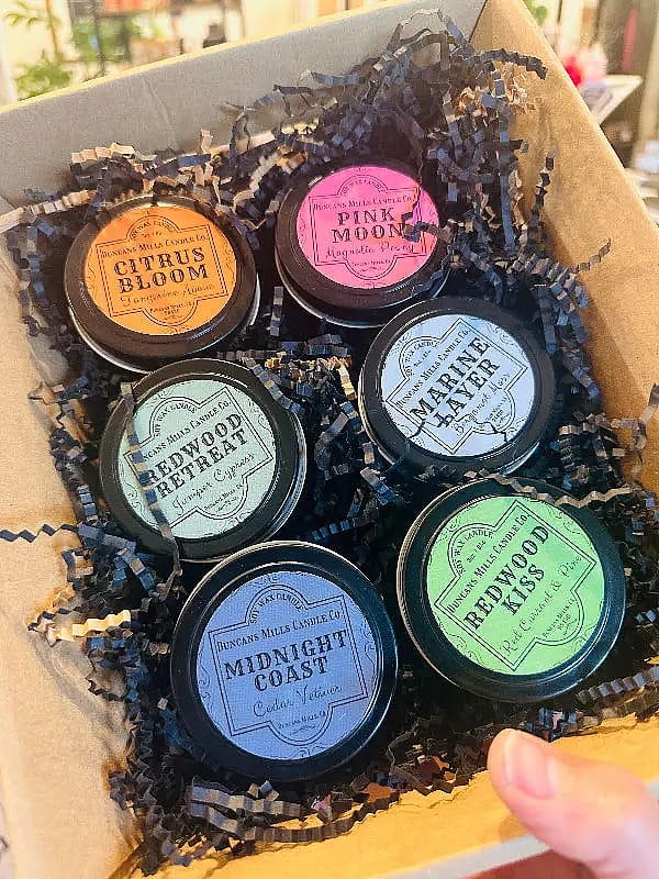 This curated sampler bundle features six of our most beloved candle scents, each housed in a charming 3 oz. travel tin and inspired by the towns, trails, and coastal dreams of the Russian River and West Sonoma County region.