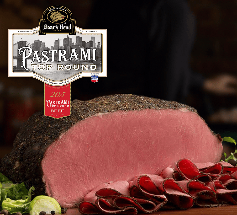 This hand-trimmed top round is rich and smoky and is generously coated with spices, then patiently smoked. Boar's Head® Top Round Pastrami is bursting with classic New York deli flavor.