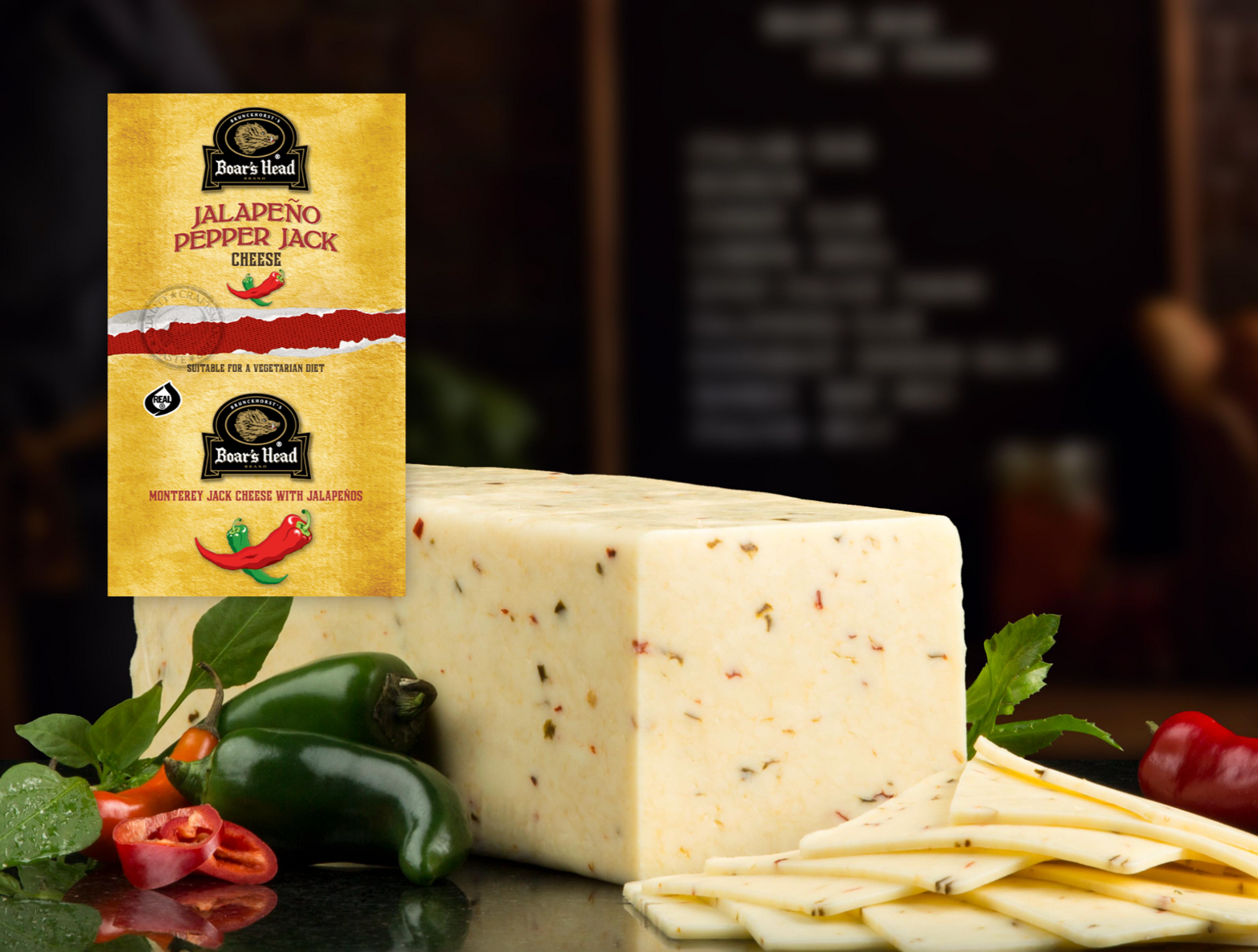 Blended with zesty red and green jalapeño peppers and aged to perfection, this buttery, slightly tart, semi-soft Monterey Jack cheese packs a flavorful punch. Boar's Head® Jalapeño Pepper Jack Cheese is produced in the U.S. with whole cow's milk.
