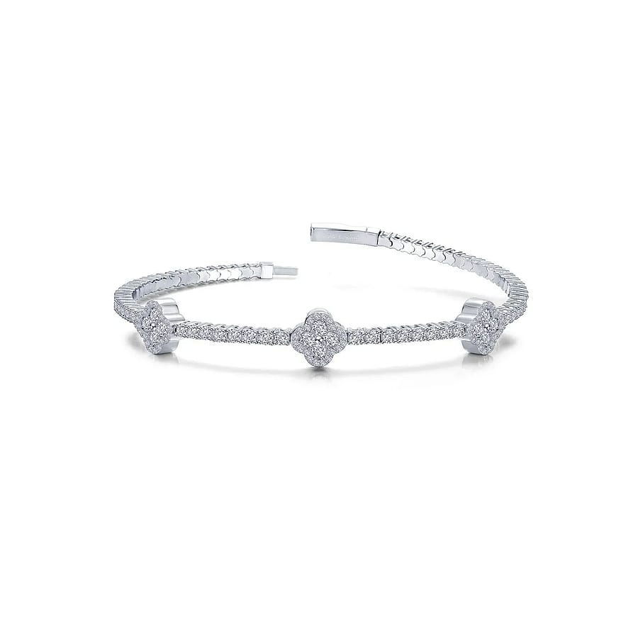 Constructed with comfort and glamor in mind, this flexible station tennis bracelet is set in Lafonn's signature Lassaire simulated diamonds in sterling silver bonded with platinum. The three good-luck symbols add a sparkling charm to the bracelet.
