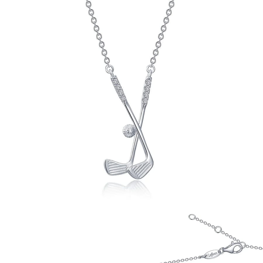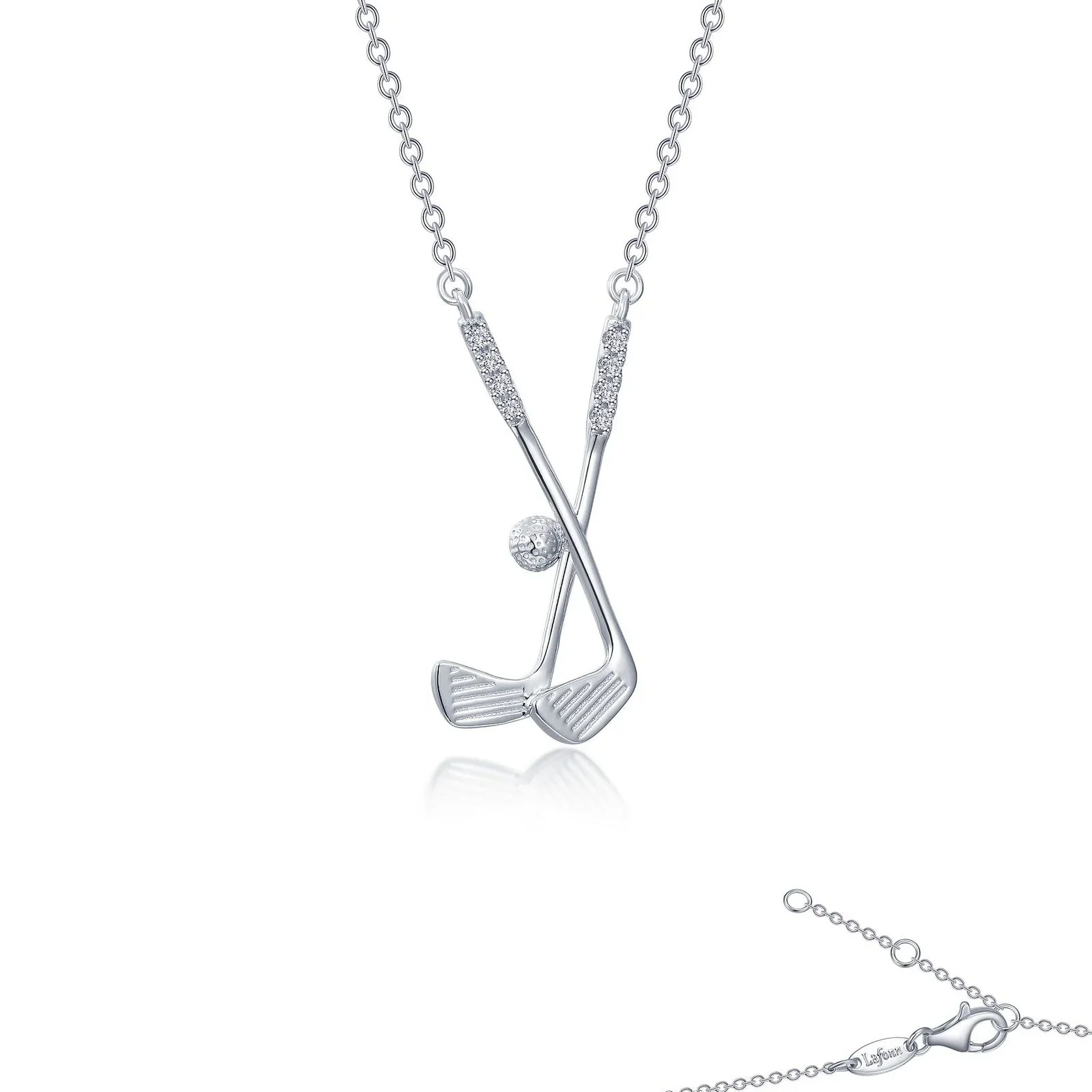 One shot at a time. This dainty golf clubs with golf ball necklace is set with Lafonn's signature Lassaire simulated diamonds in sterling silver bonded with platinum. CTW: 0.08