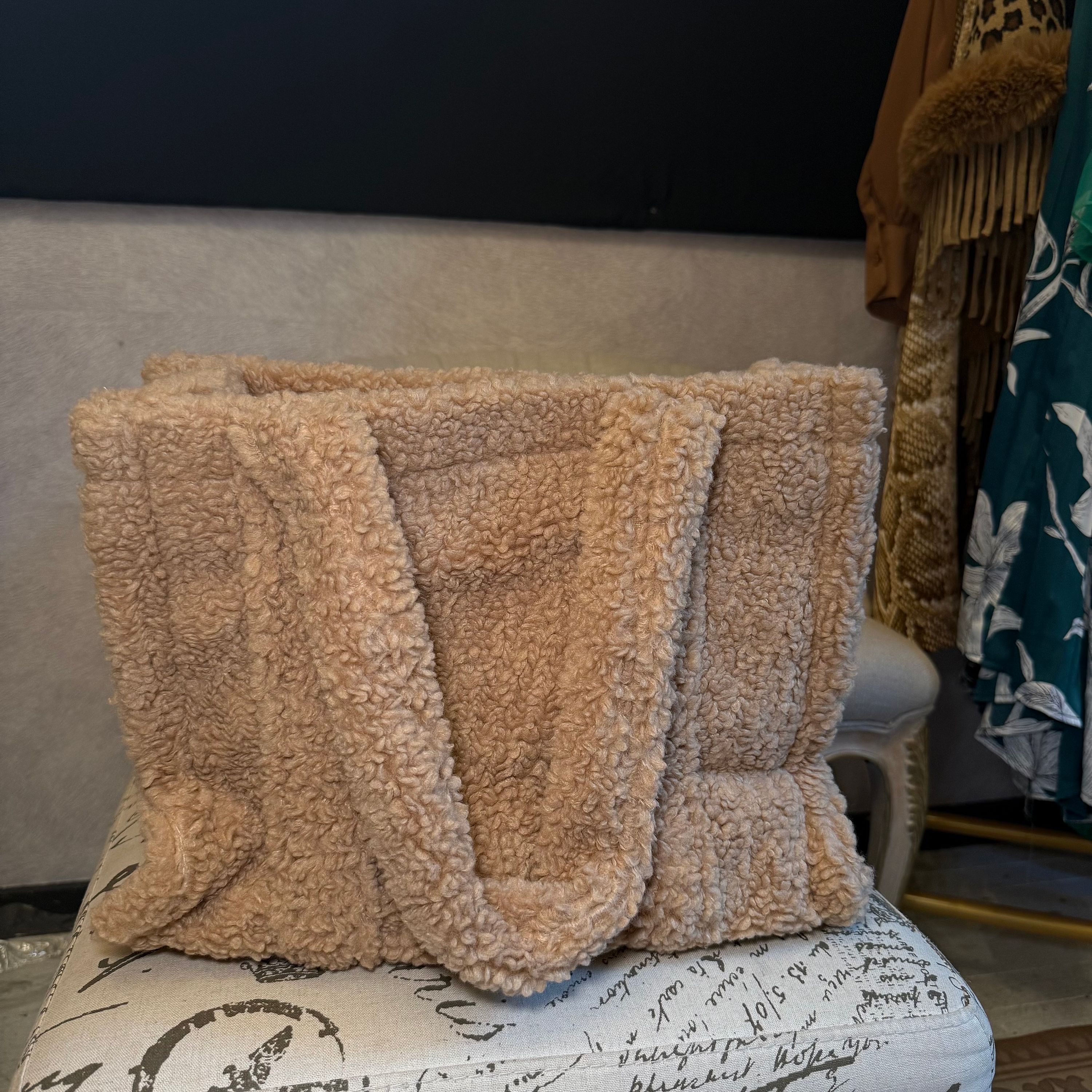 - Material: 100% Polyester (Faux Sherpa)
