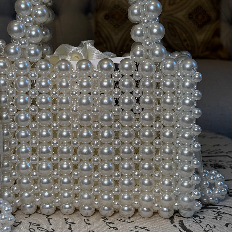 A luxurious accessory that doubles as wearable art, this pearl box bag makes a timeless statement wherever you go.