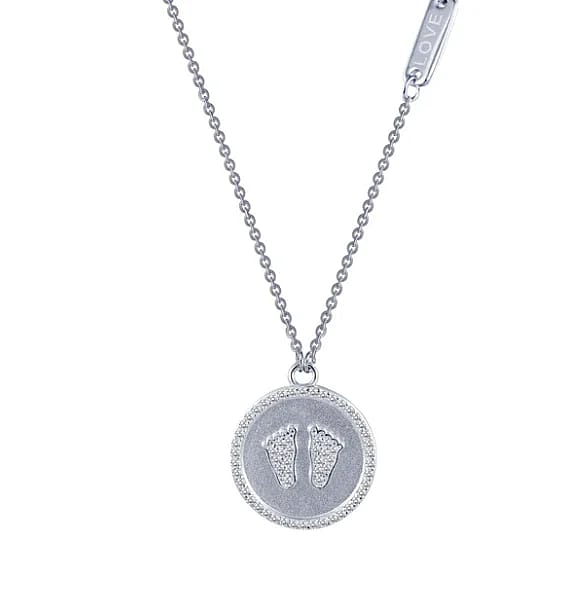 The Sentimedals Collection. This designer necklace is set with Lafonn's signature Lassaire clear simulated diamonds in sterling silver bonded with platinum.