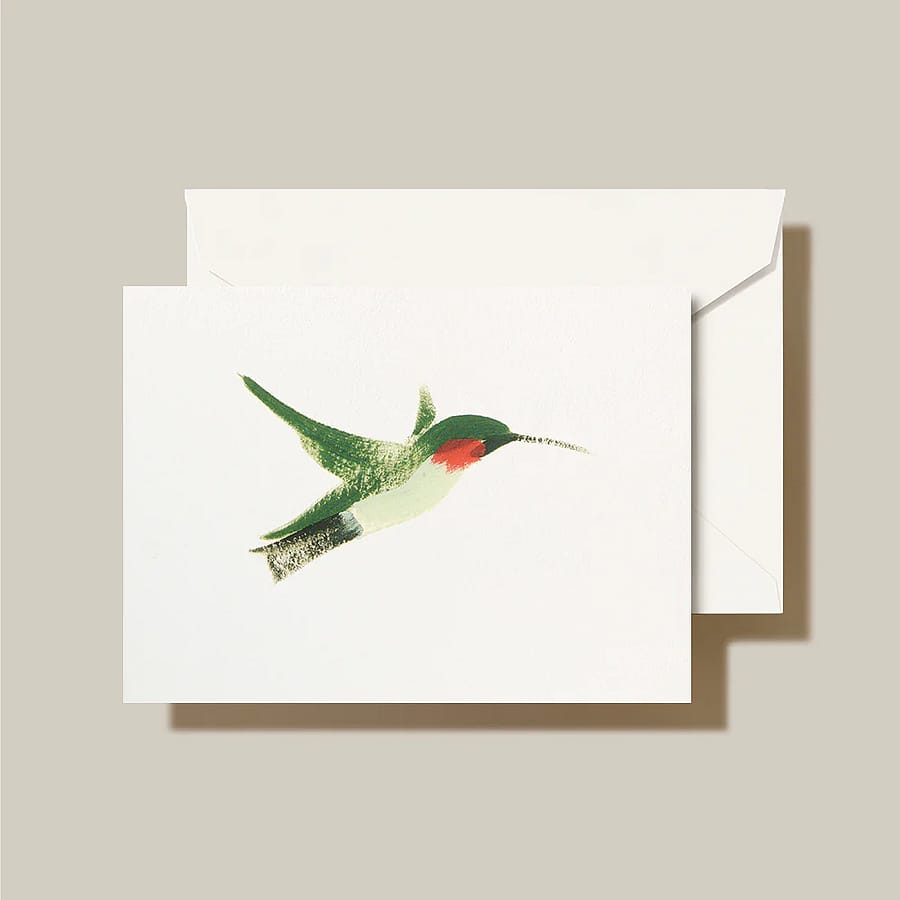 Hummingbirds are often seen as a sign of good luck—it certainly feels that way when one flits by. Send along some positivity with this artistically illustrated folded note, printed on all-cotton paper that feels as lush as a painter's canvas. With a stack of these on your desk, inspiration is a little more likely to flutter your way. Folded Note 10 notes / 10 envelopes 3 13/16 x 5 3/16 100% Cotton Paper Medium weight paper Made in U. S. A.