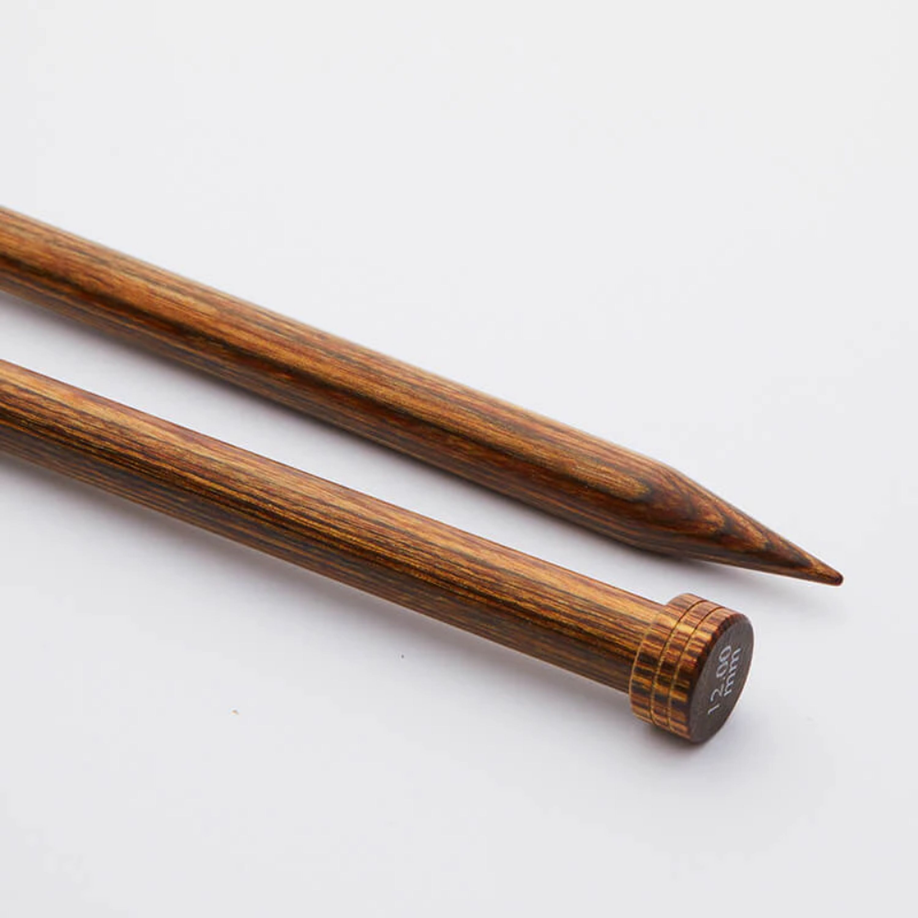 Ginger single point needles come in a richly colored warm laminated birchwood that has a traditional look and feel. The tapered points are smoothly honed to perfection for easy knitting and stitch pick ups, too! #sonomaguide2025