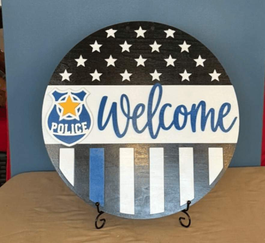16” Welcome Door Hanger - USA Flag Blue Lives Matter.