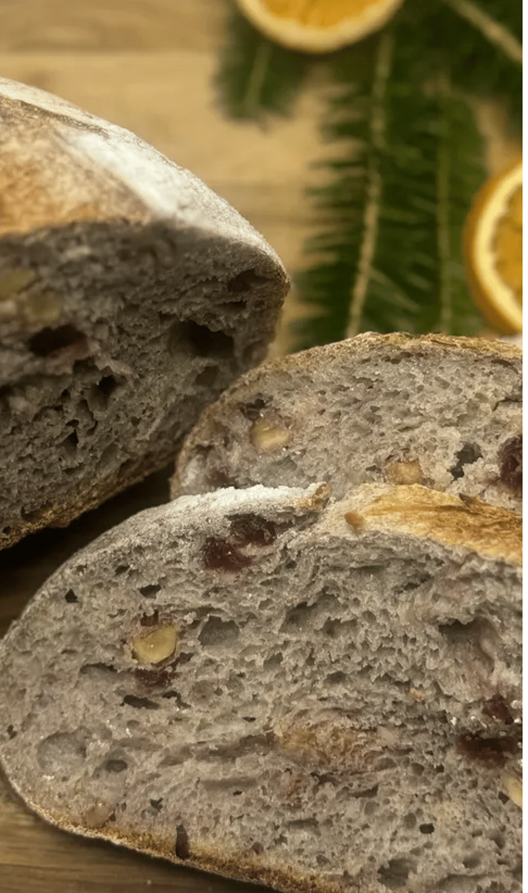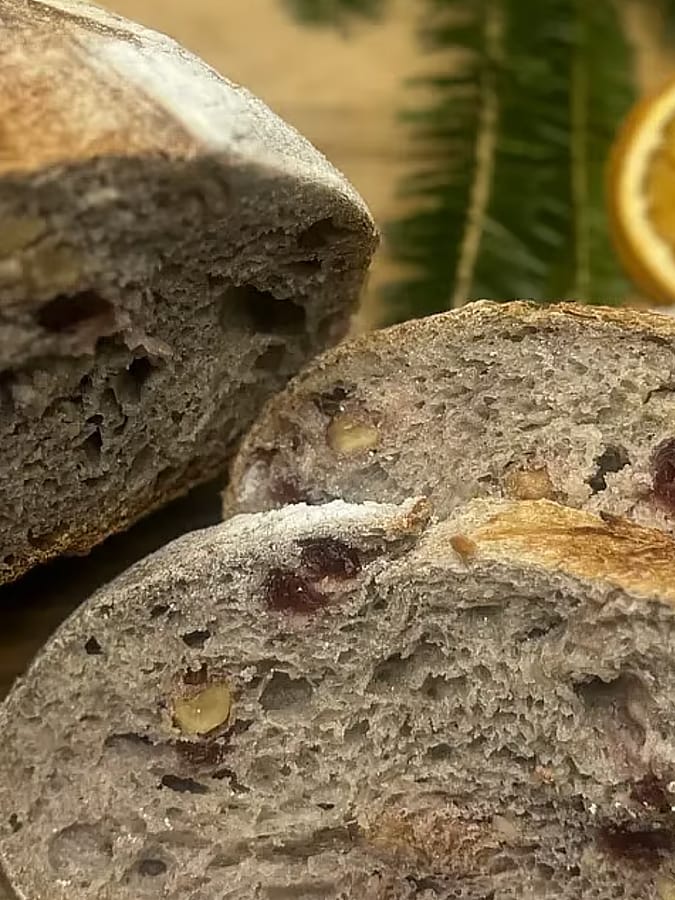 (800 grams) Made with regionally sourced, Stone Milled Organic Wheat (Hard Red Spring Wheat), filtered water, salt and a natural leavening agent otherwise known as a levain or starter, organic walnut and organic cranberries.