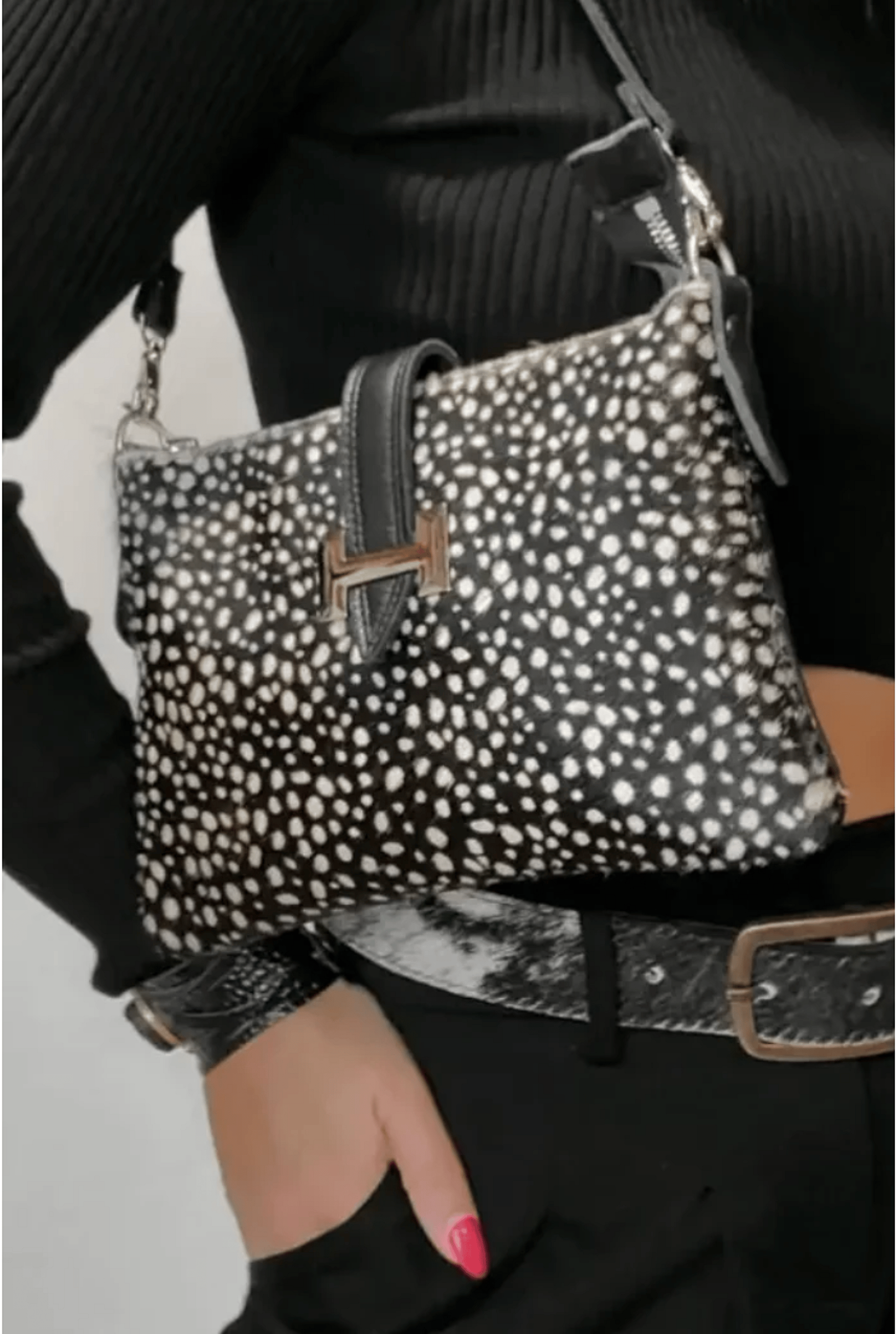 Genuine cowhide Leather handbag and crossbody Soft construction metal accessory leather detachable cross-body StrapLeather detachable short shoulder strap lining in polyester inside pocket Dimensions:10 in x6 in x 1 in(width x height x depth) Weight:0.5 lbs.
