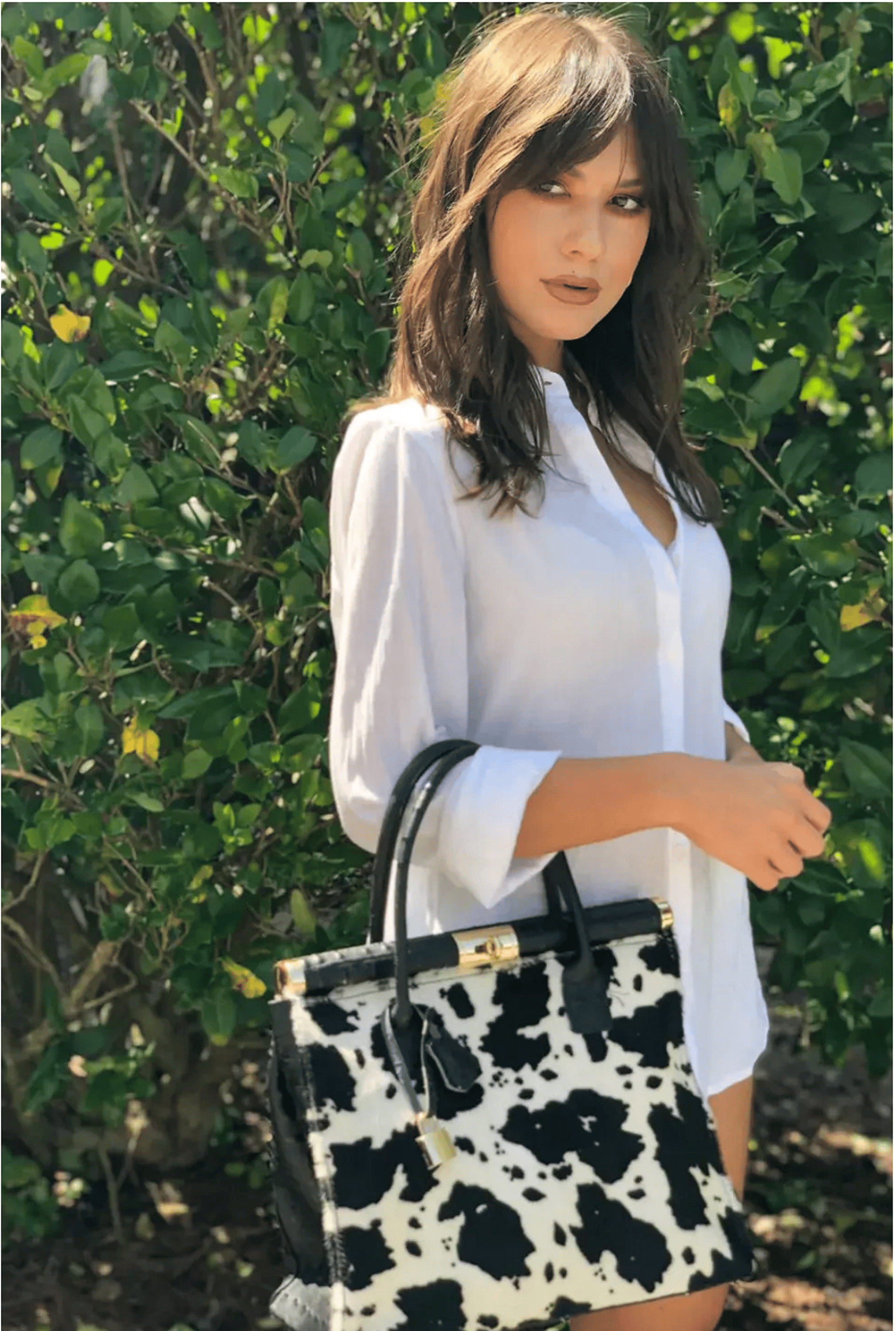 Genuine cowhide fur leather croco print medium handbag shoulder bag front cowhide fur metal accessories semi-rigid construction back pocket inside zip pocket for documents3 big internal compartments lining in polyester accessories:leather removable strap dimensions: 14 in x 11x 6in (width x height x depth)