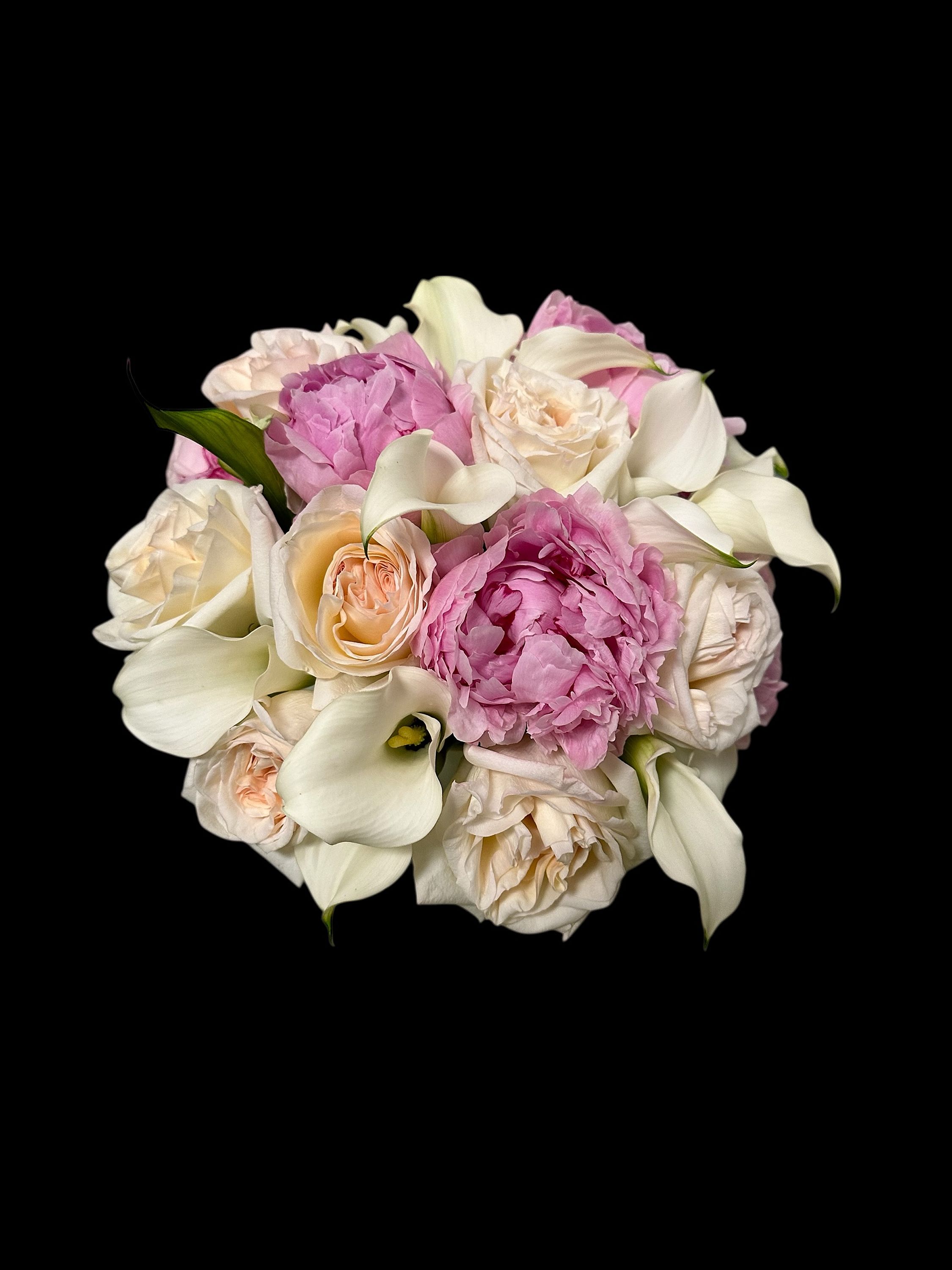 mix flowers, Roses OHARA with Calla lilies, and beautiful PINK PEONIES