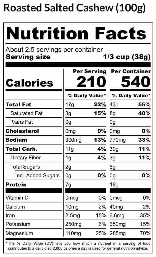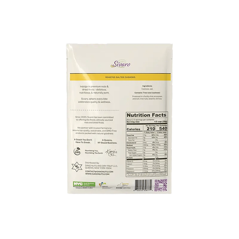 The Flavor: Premium cashews roasted to bring out their natural butteriness, finished with just a touch of salt.