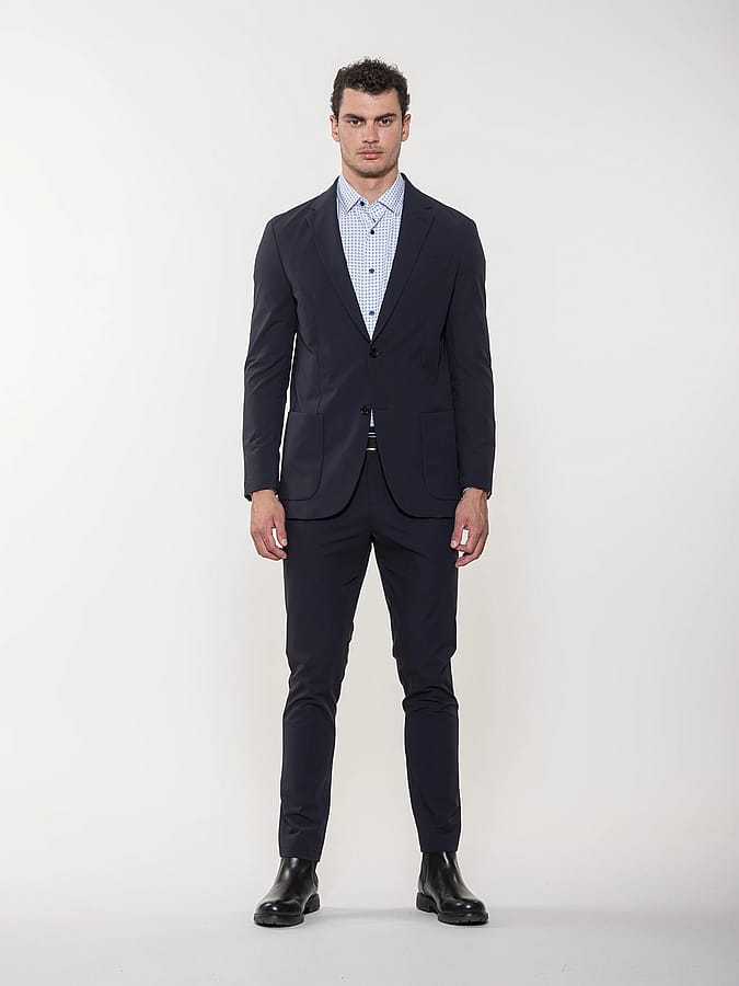 Odyssey performance travel jacket with 4-way stretch. with flexibility in all directions, it provides maximum comfort for all day wear for work or when traveling. Made in Europe 90% nylon, 10 % spandex