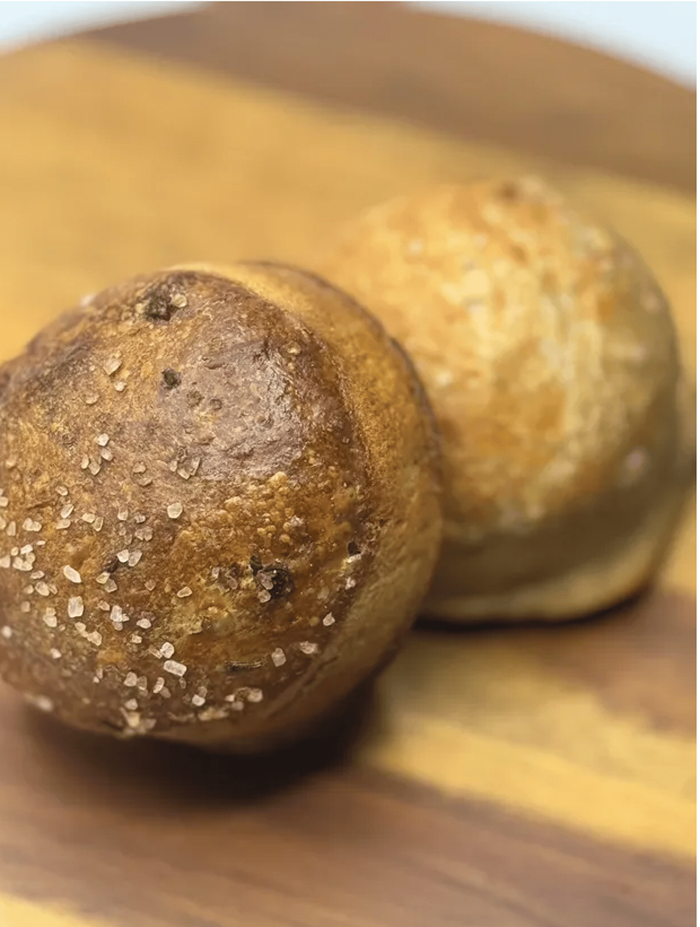 Made with regionally sourced, Stone Milled Organic Wheat (Hard Red Spring Wheat), filtered water, salt and a natural leavening agent otherwise known as a levain or starter, organic garlic & herbs, local organic egg wash on top. *1/2 Dozen*