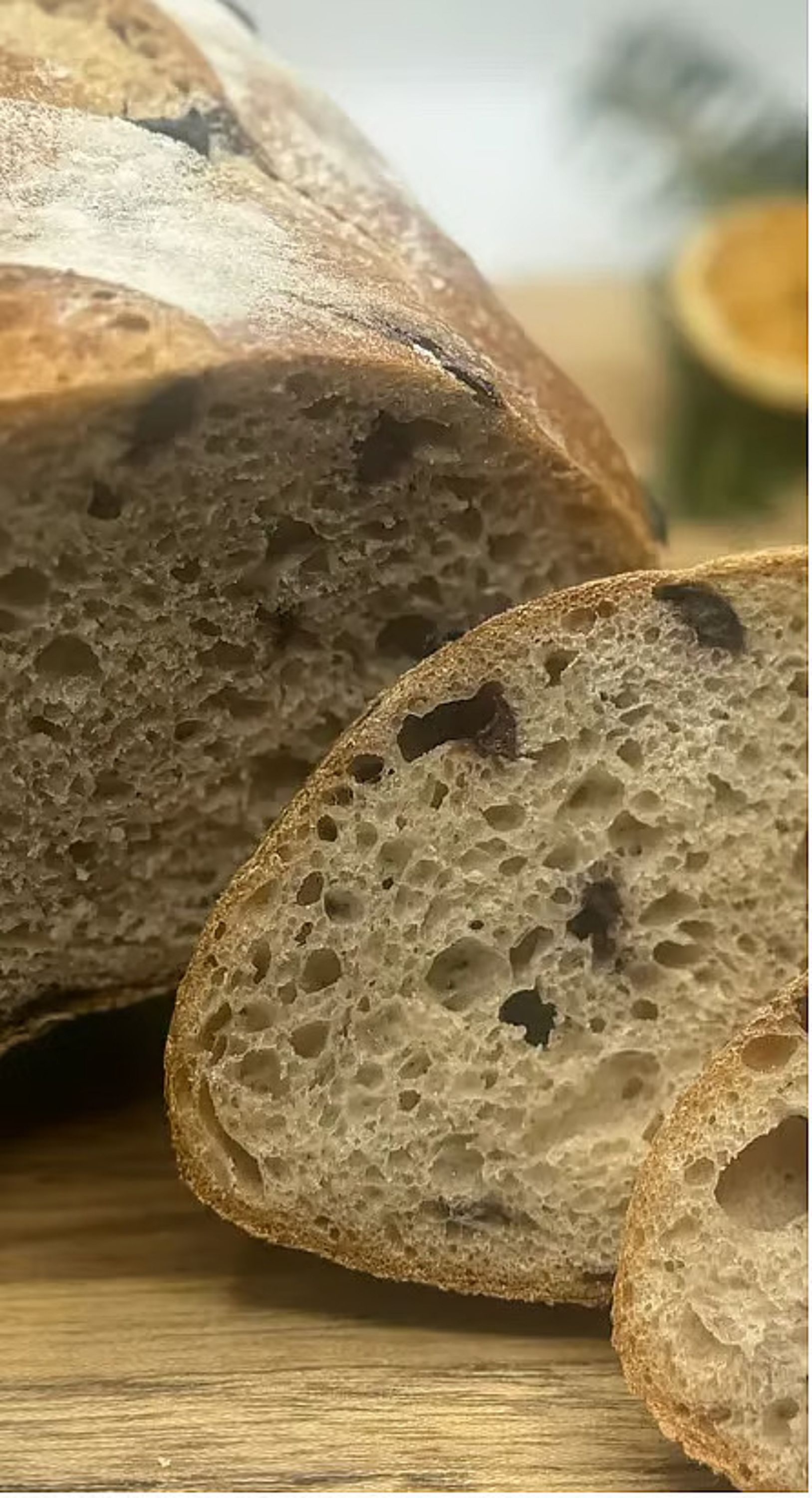 (800 grams) Made with regionally sourced, Stone Milled Organic Wheat (Hard Red Spring Wheat), filtered water, salt and a natural leavening agent otherwise known as a levain or starter and organic kalamata olives.